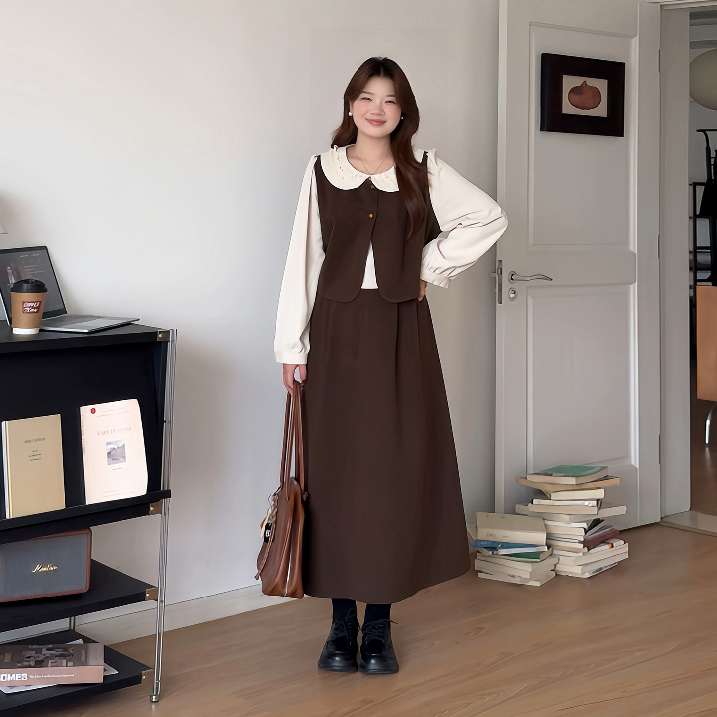 巨好看 微胖 胖mm春装 女装 显瘦娃娃领连衣裙子6155 喵喵适合大码
