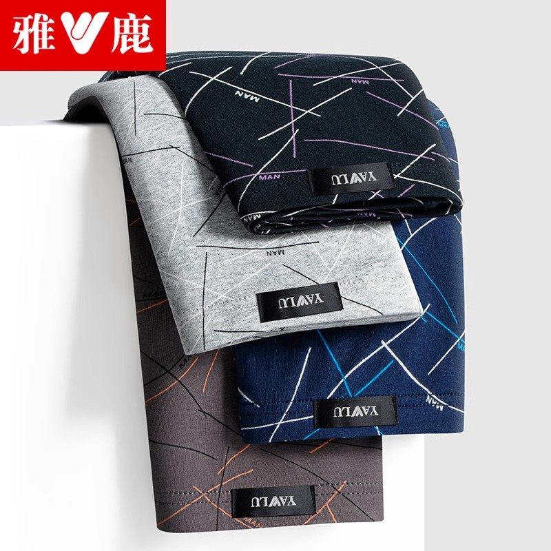 内裤 透气裤 纯棉平角裤 头抗菌裆男式 衩 男生青少年四角短裤 雅鹿男士