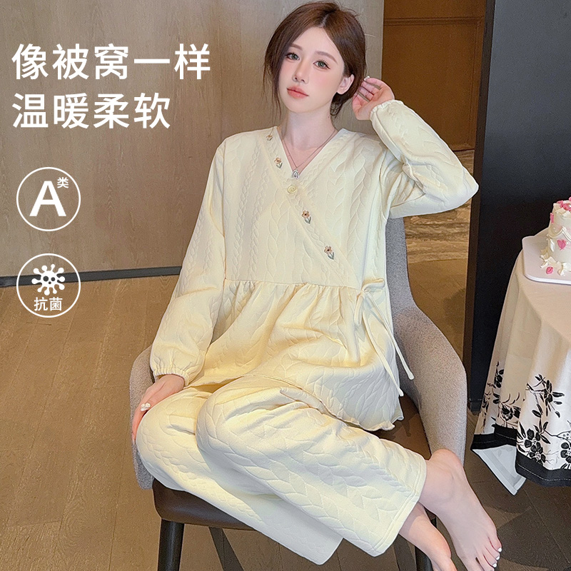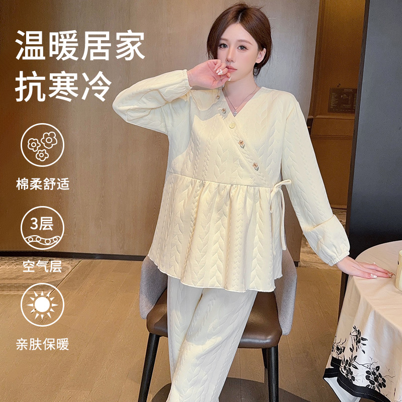 孕妇睡衣秋冬季 空气棉月子服冬厚款 11月份产后纯棉产妇哺乳套装