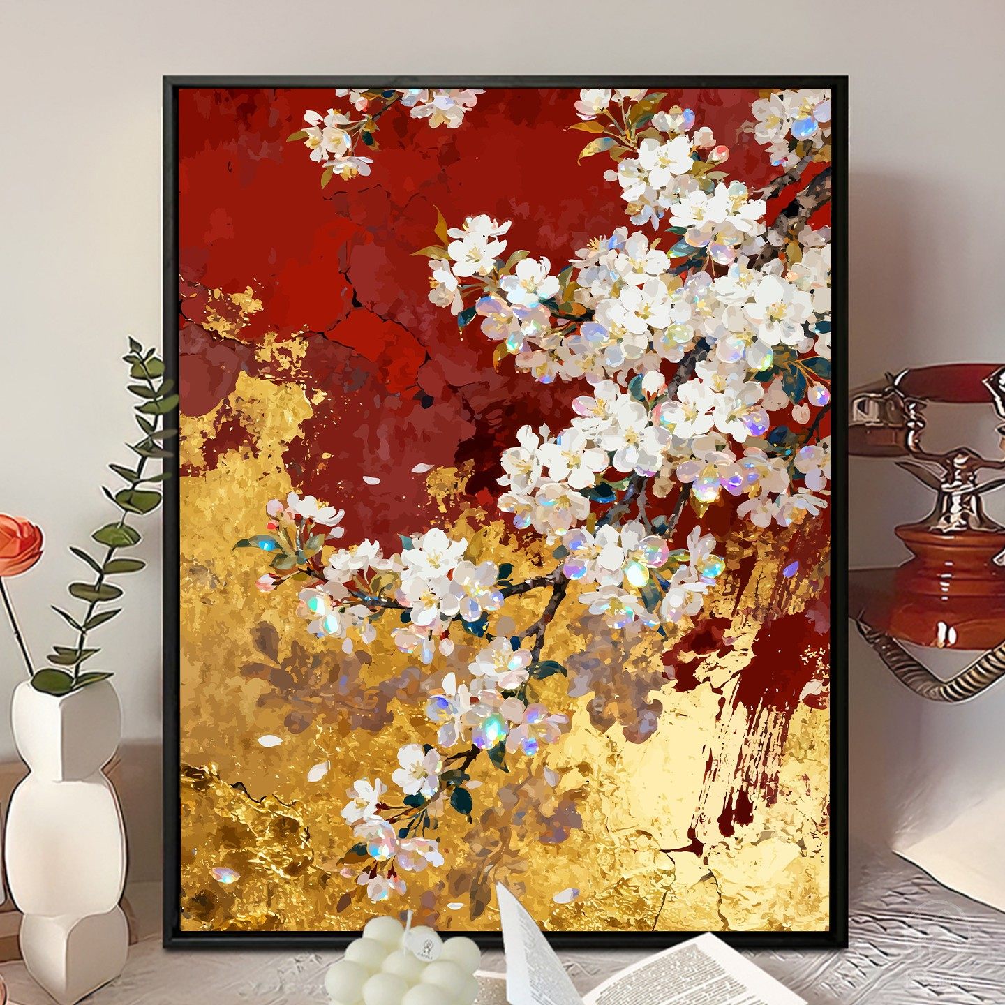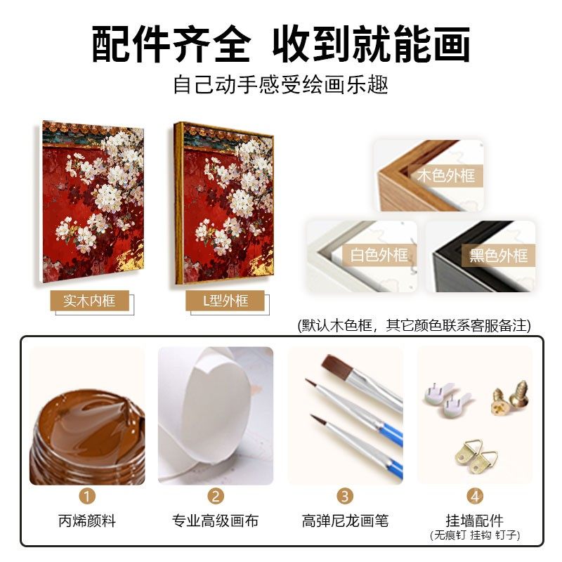 2025新款 饰画 中国风故宫杏花数字油画diy填充涂色手工绘高级感装