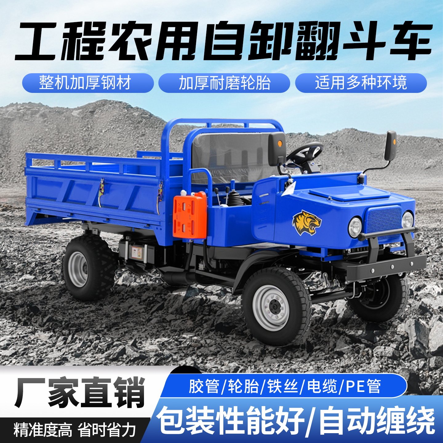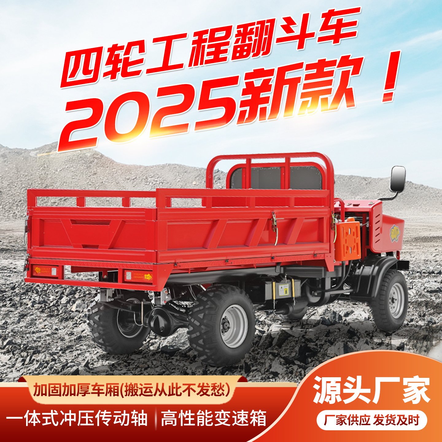 柴油四轮车四驱自卸翻斗车厂区拉货农用车工地载重运输车建筑工程