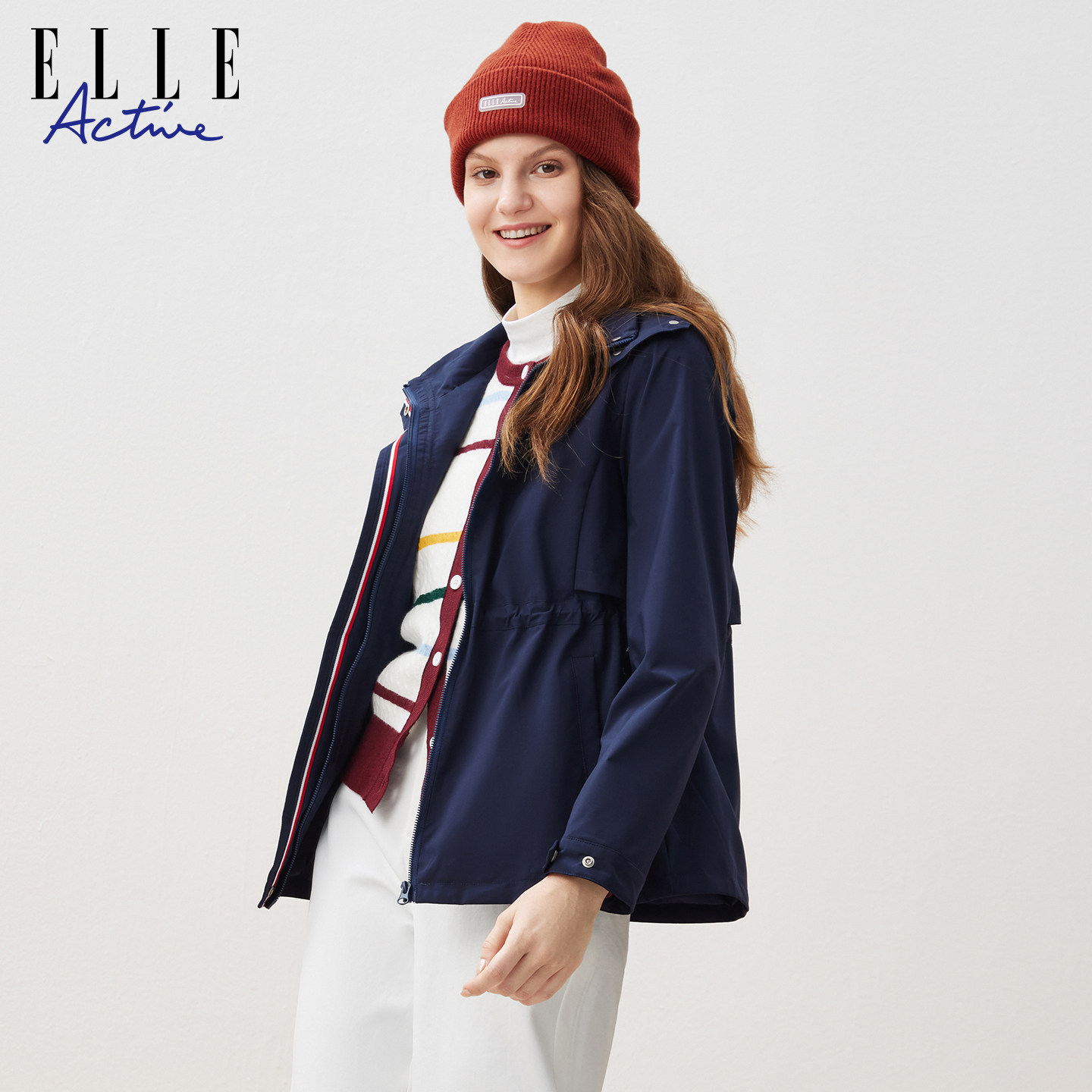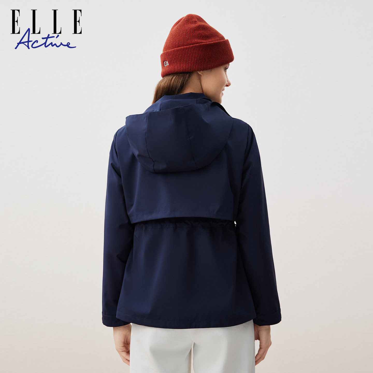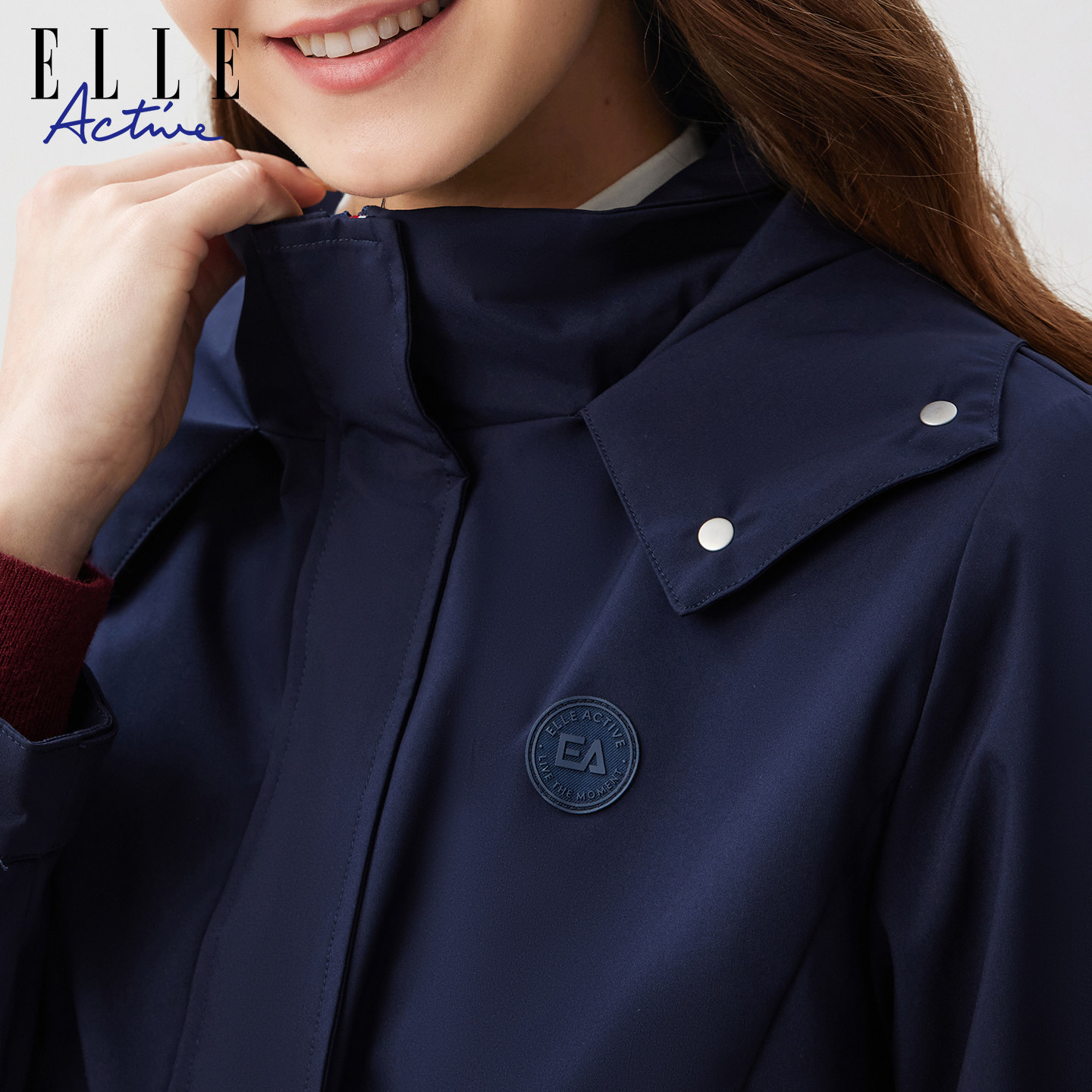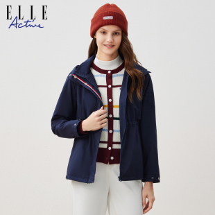 ELLE 防风夹克宽松 Active松驰户外运动风衣女连帽休闲外套中长款