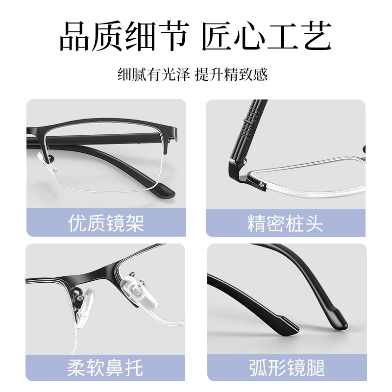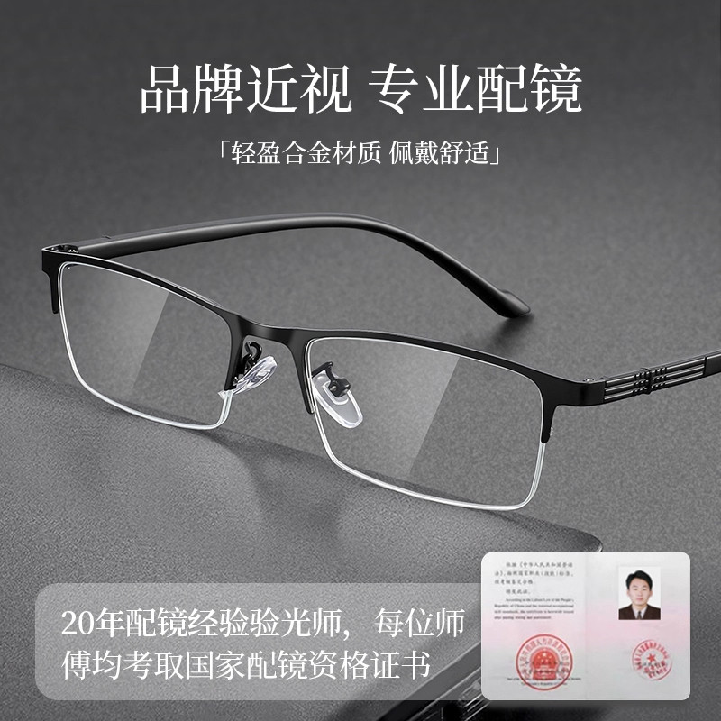 2025新款 可配度数眼睛 半框近视眼镜200度看手机保护眼睛专业男士