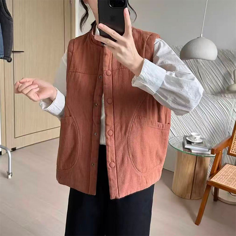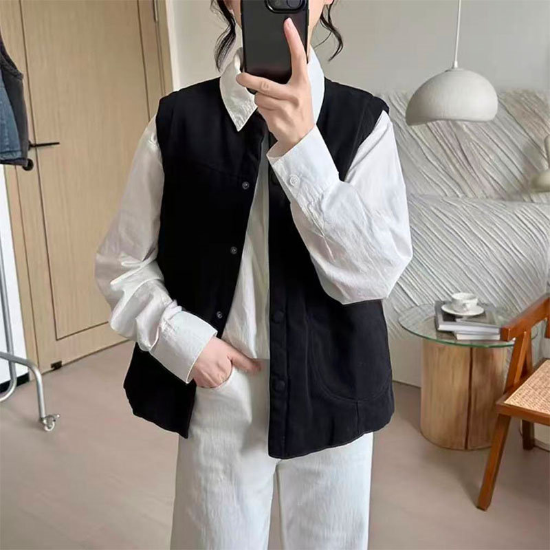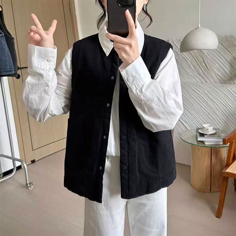 日系复古风小个子宽松短款 宽松百搭马夹 棉马甲外套女2025秋冬新款