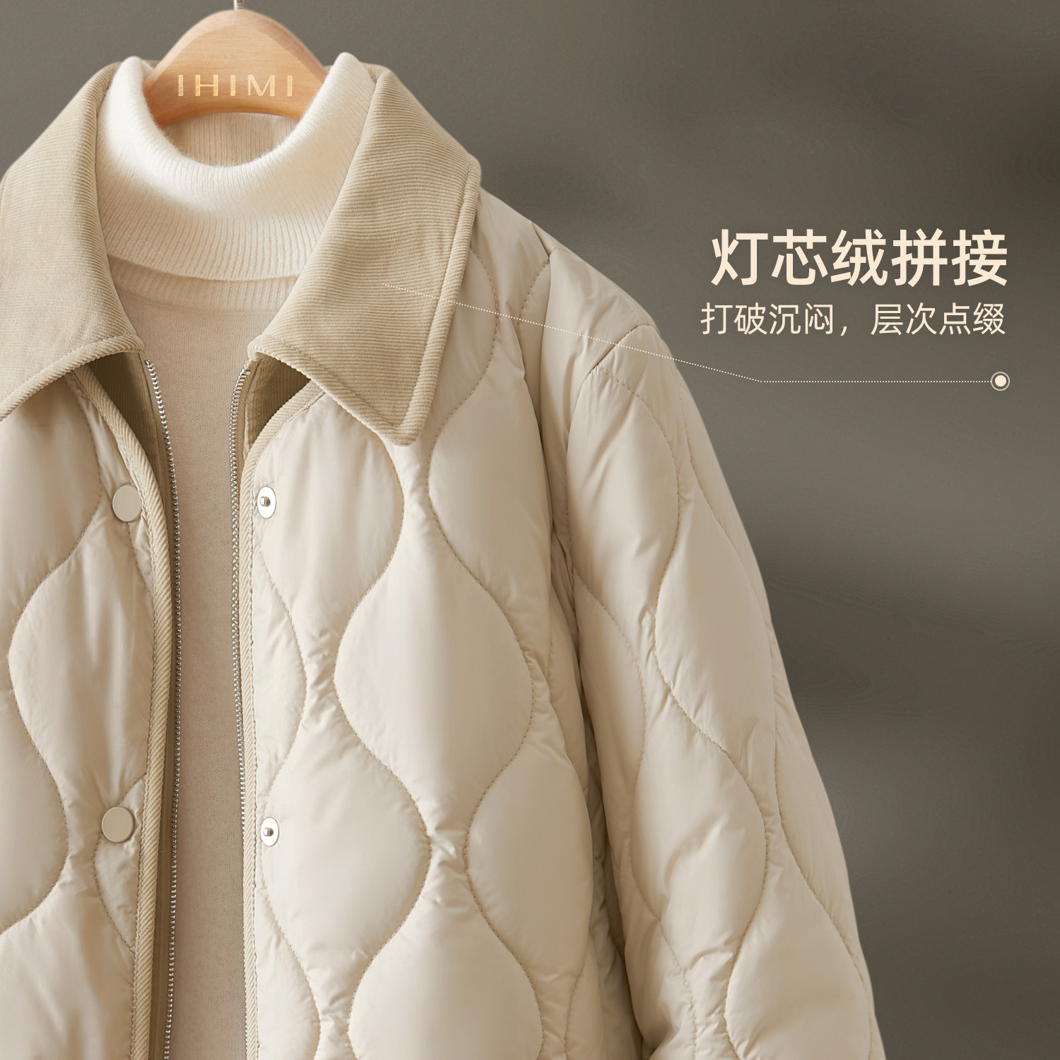 设计棉衣25冬新款 式 百搭灯芯绒拼接棉服外套 海谧假两件衬衫 IHIMI