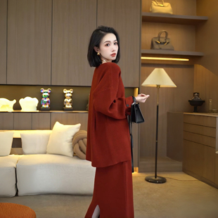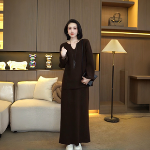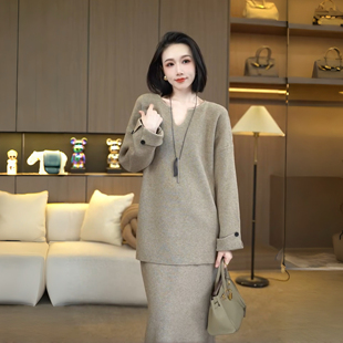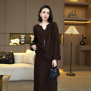 秋冬女一整套松弛感气质显瘦针织上衣半身裙两件套裙装 7050