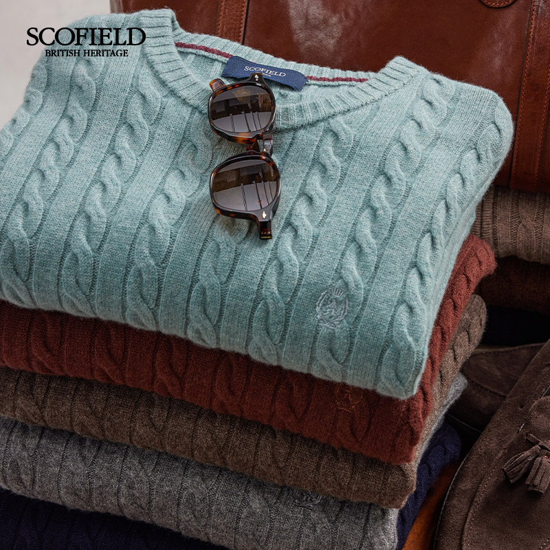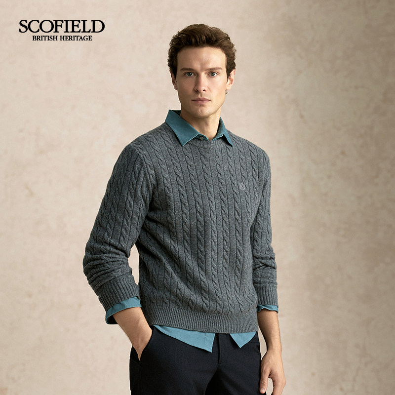 圆领绞花针织衫 商务通勤保暖长袖 毛衣男 25年秋冬新品 SCOFIELD男装