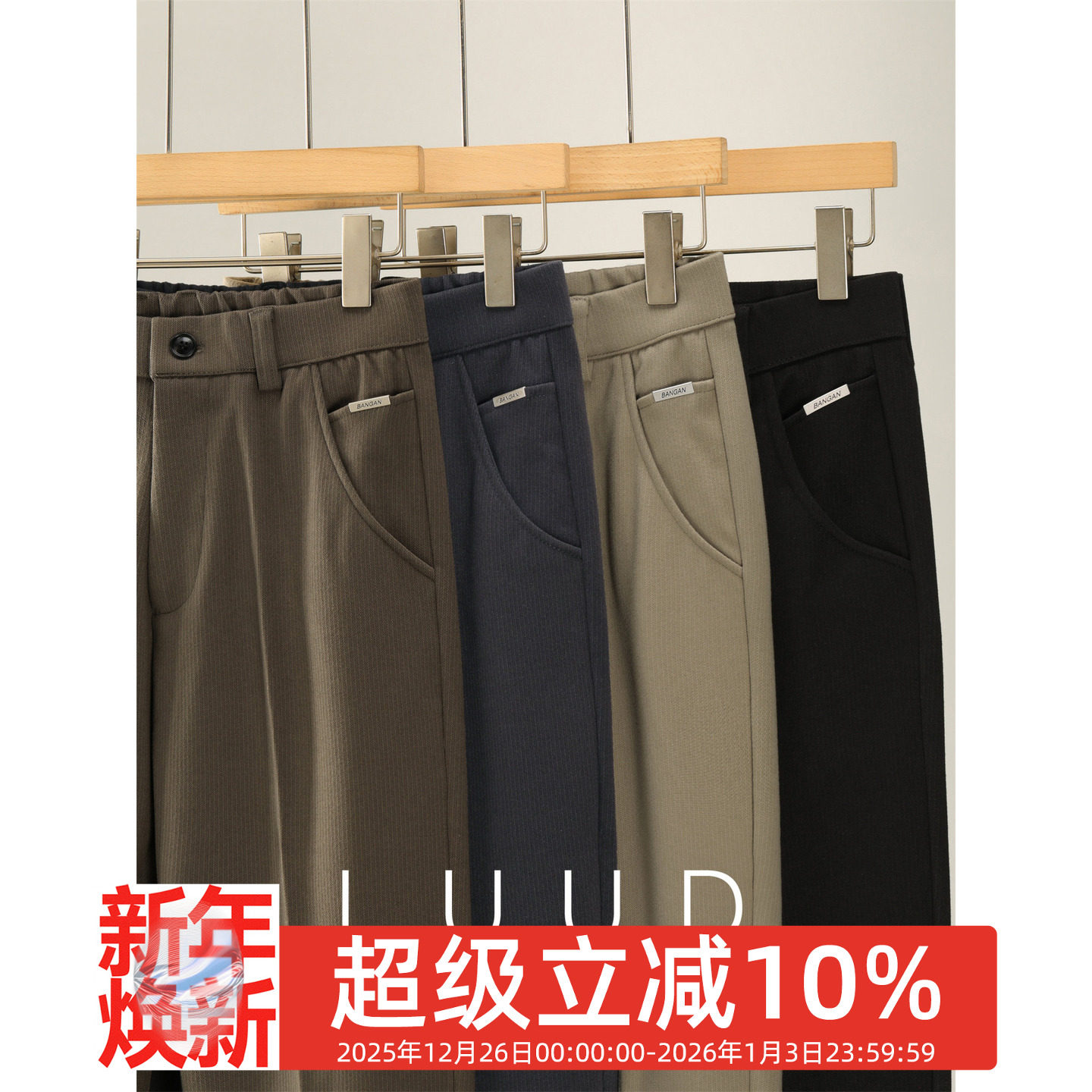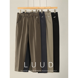 手工烫定型褶西裤 男冬季 竖纹肌理感毛呢合体小直筒休闲长裤 LUUD
