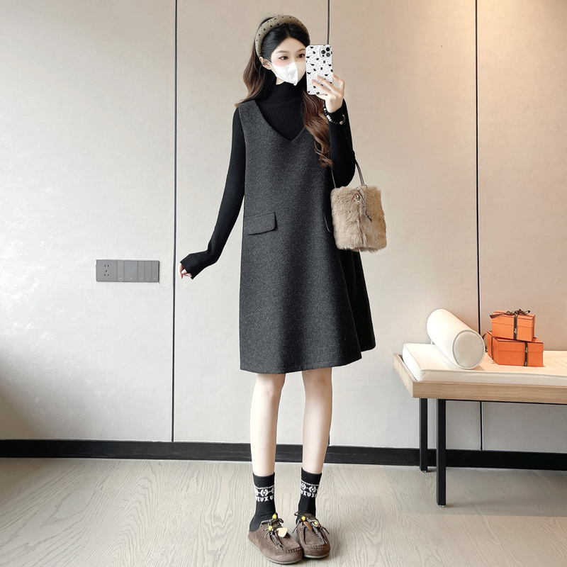 毛呢孕妇大码 韩风中长款 连衣裙 新款 秋冬季