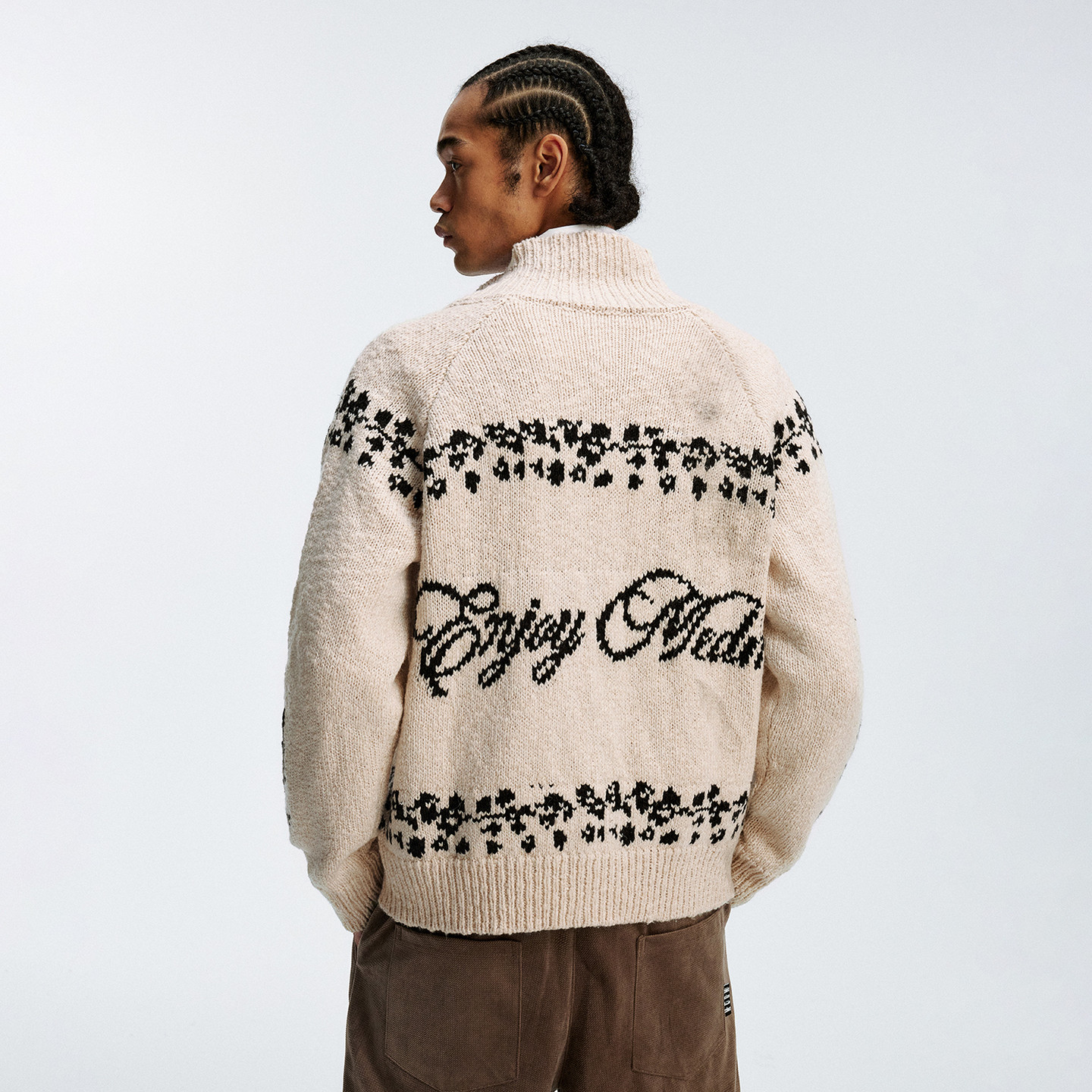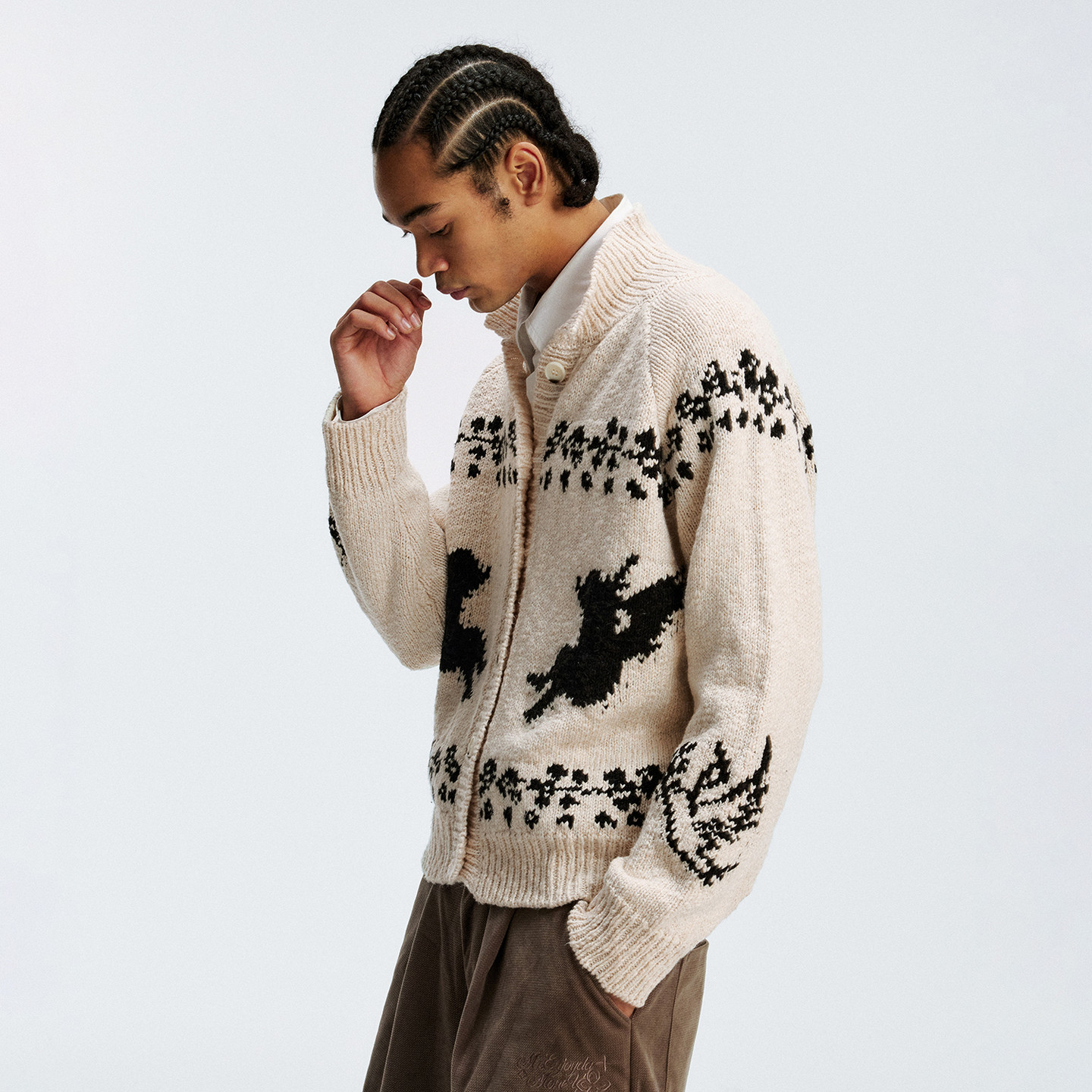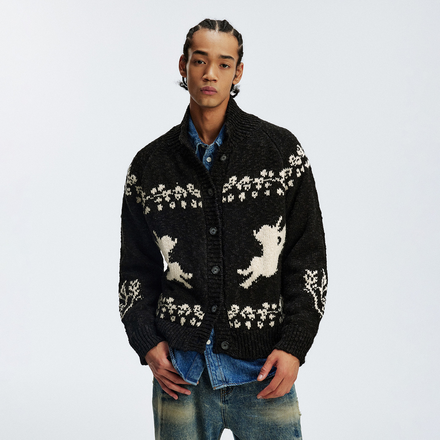 7229 亲肤休闲单排扣三色针织小立领毛衣开衫 鹿与飞鸟 时间煮雪