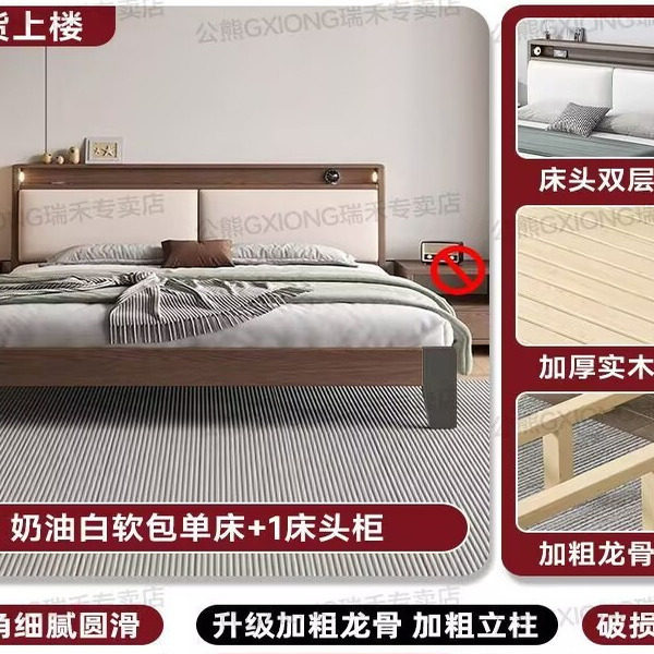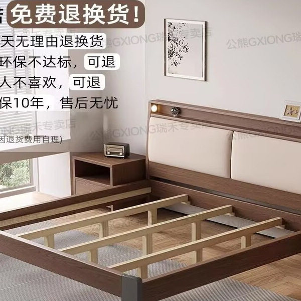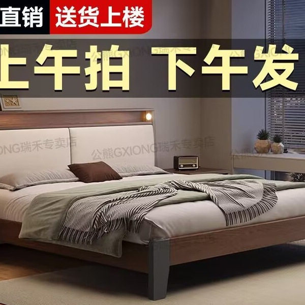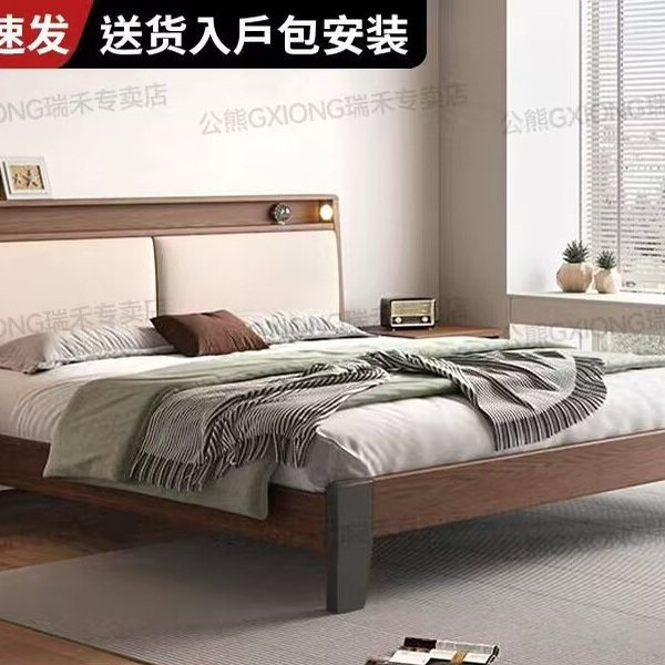 实木床1.8米主卧大床双人床1.5家用小户型出租房民宿1.2单人床