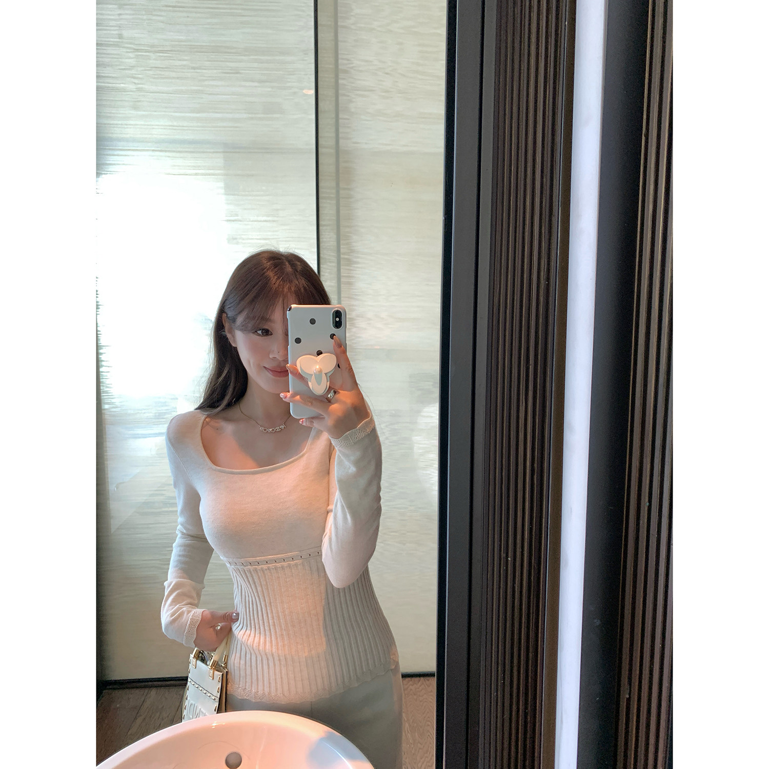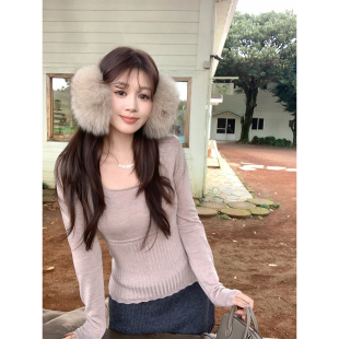 打底衫 海盐可露丽30羊毛方领设计感收腰秋冬针织长袖 新品 AHY