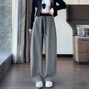 垂感休闲直筒小个子加绒纯棉运动卫裤 窄版 2025新款 女秋冬季 阔腿裤