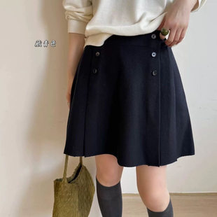 韩系高腰显瘦百搭双排扣a字毛呢半身裙灰色系呢子短裙miu系秋冬女