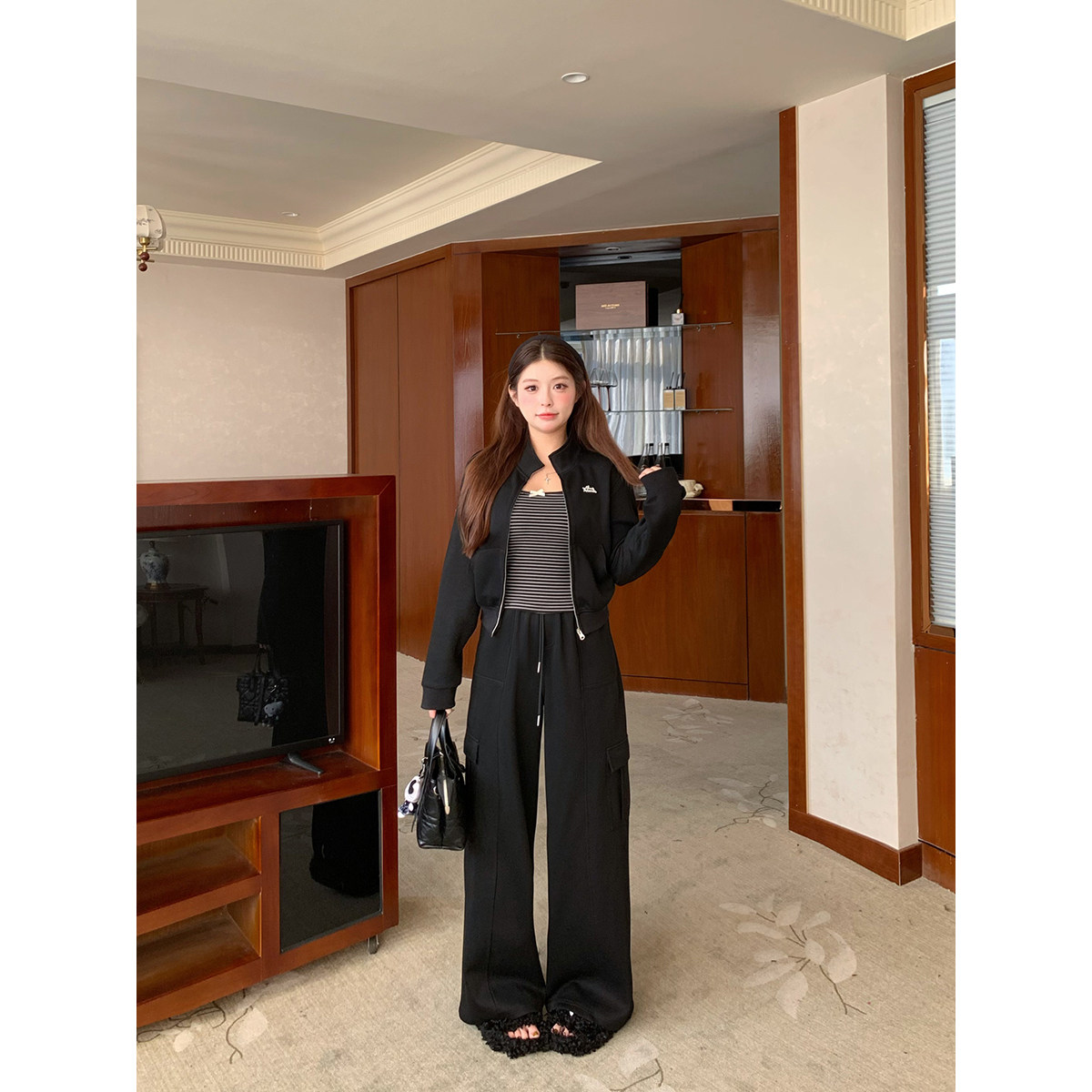 居家运动风修身 卫衣两件套装 外套休闲裤 女微胖大码 套装 安妮不火
