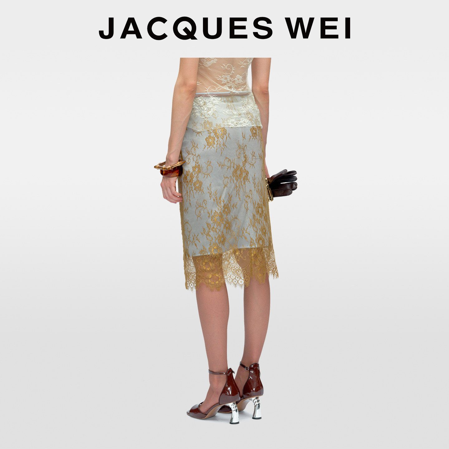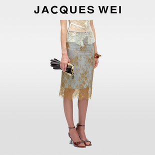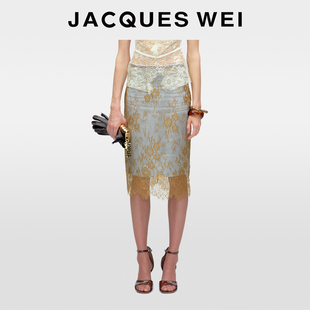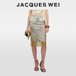 JACQUES 棕绿色撞色蕾丝垂感半身裙子送女友礼物 WEI2025秋冬新款
