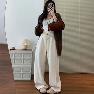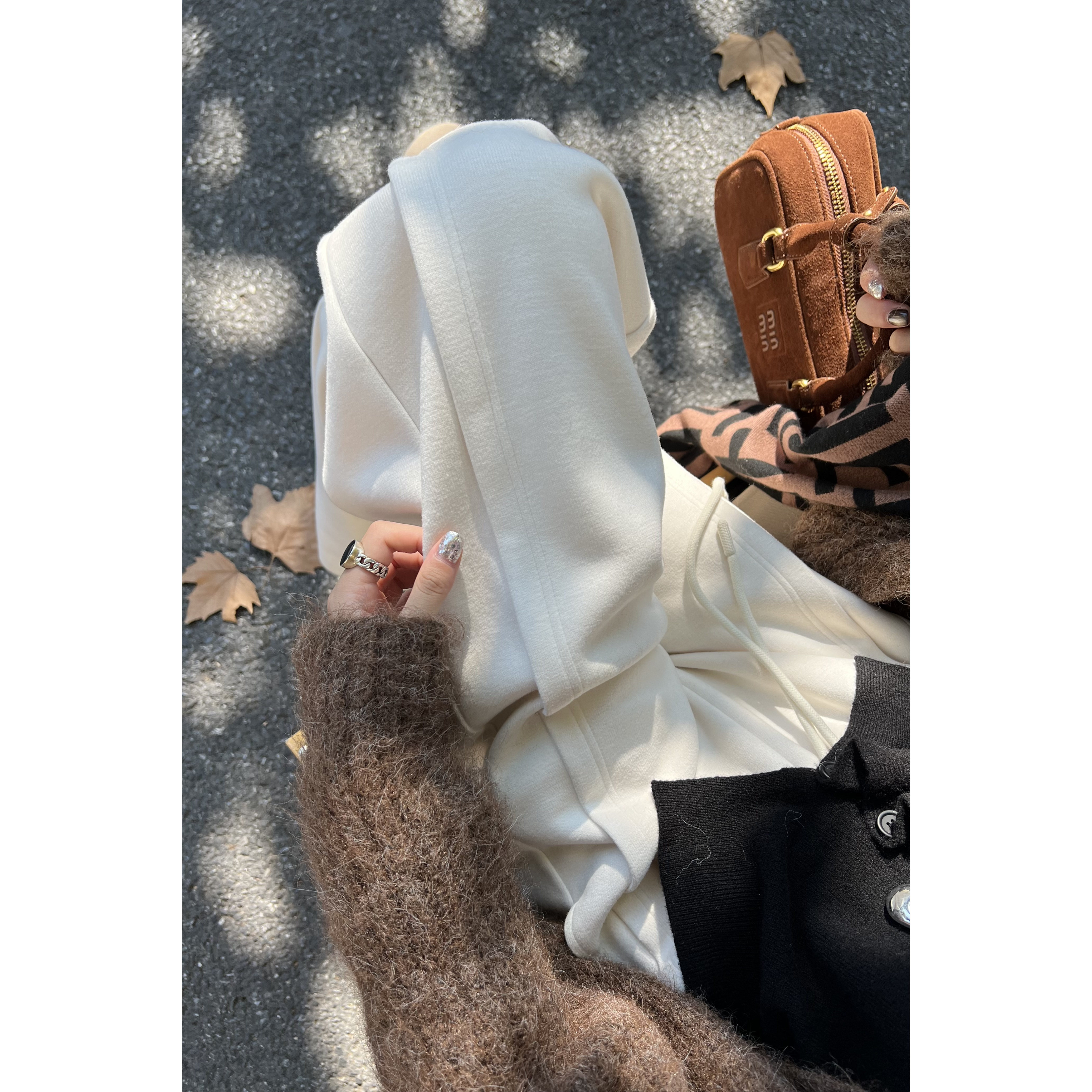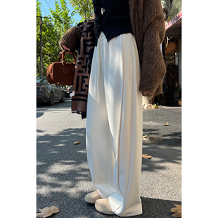 休闲加绒阔腿裤 高腰垂感糯米弯刀裤 子 女秋冬新款 羊毛运动卫裤