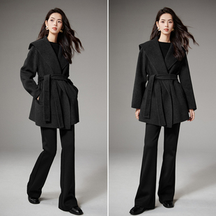 慵懒风双面羊毛大衣女中长款 灰色毛呢外套高级感