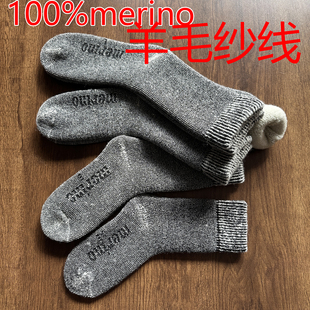 100%美利奴羊毛纱线男女童袜子6级厚度全毛圈保暖户外登山滑雪袜