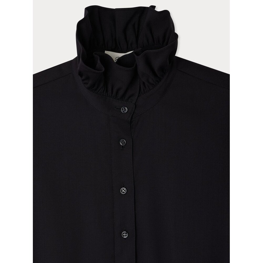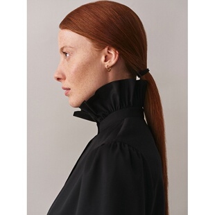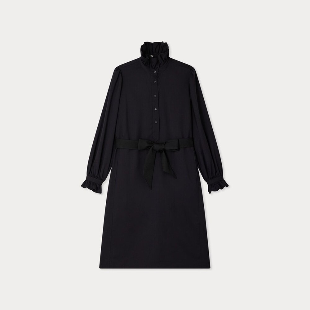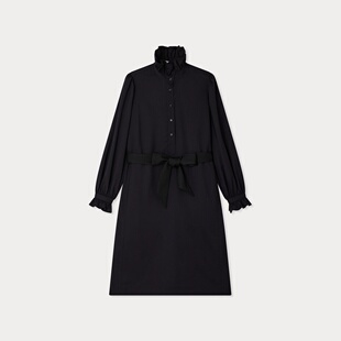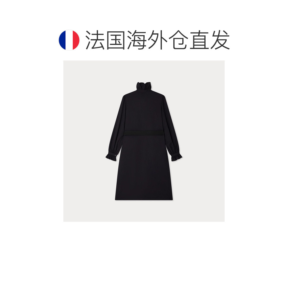 自营欧洲直邮Bonpoint小樱桃 Joie女士黑色荷叶领羊毛连衣裙