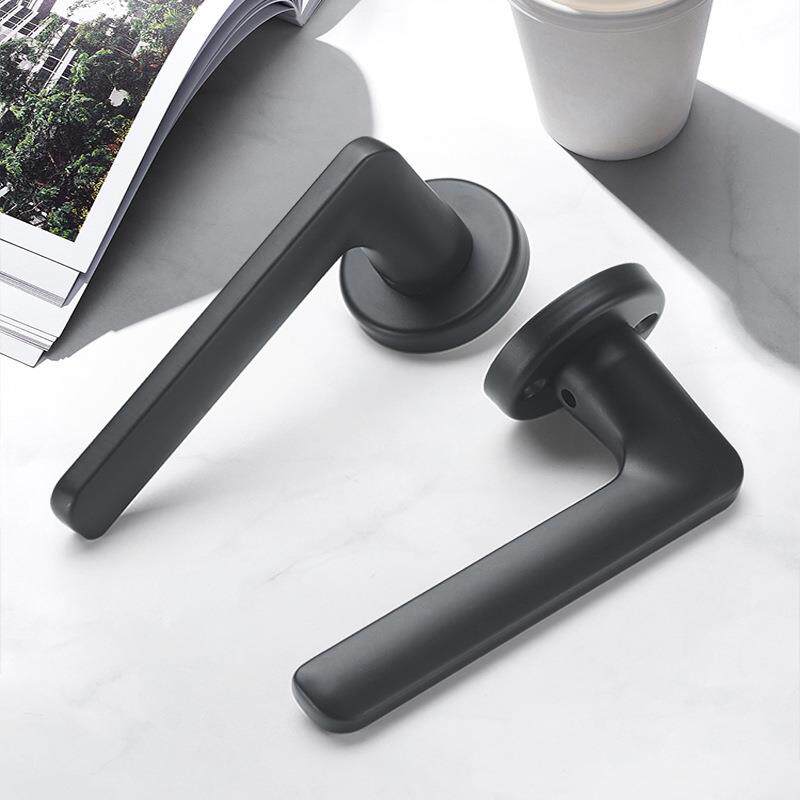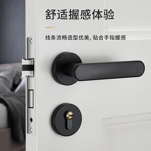 卧室门锁家用房间实木门把手锁具通用型分体静音黑色室内房门手柄