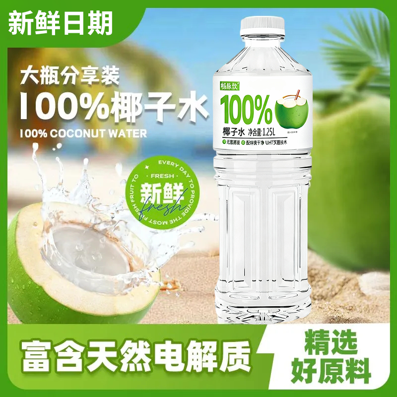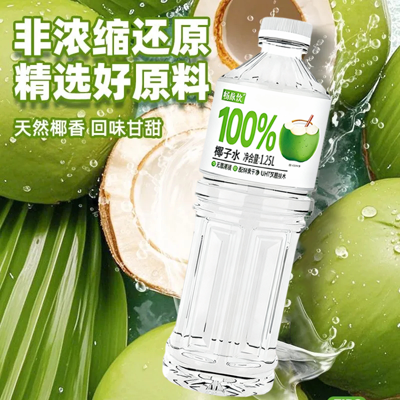 聚餐整箱畅饮5斤装 瓶装 100%椰子水果汁1.25L 百分百 买一送一