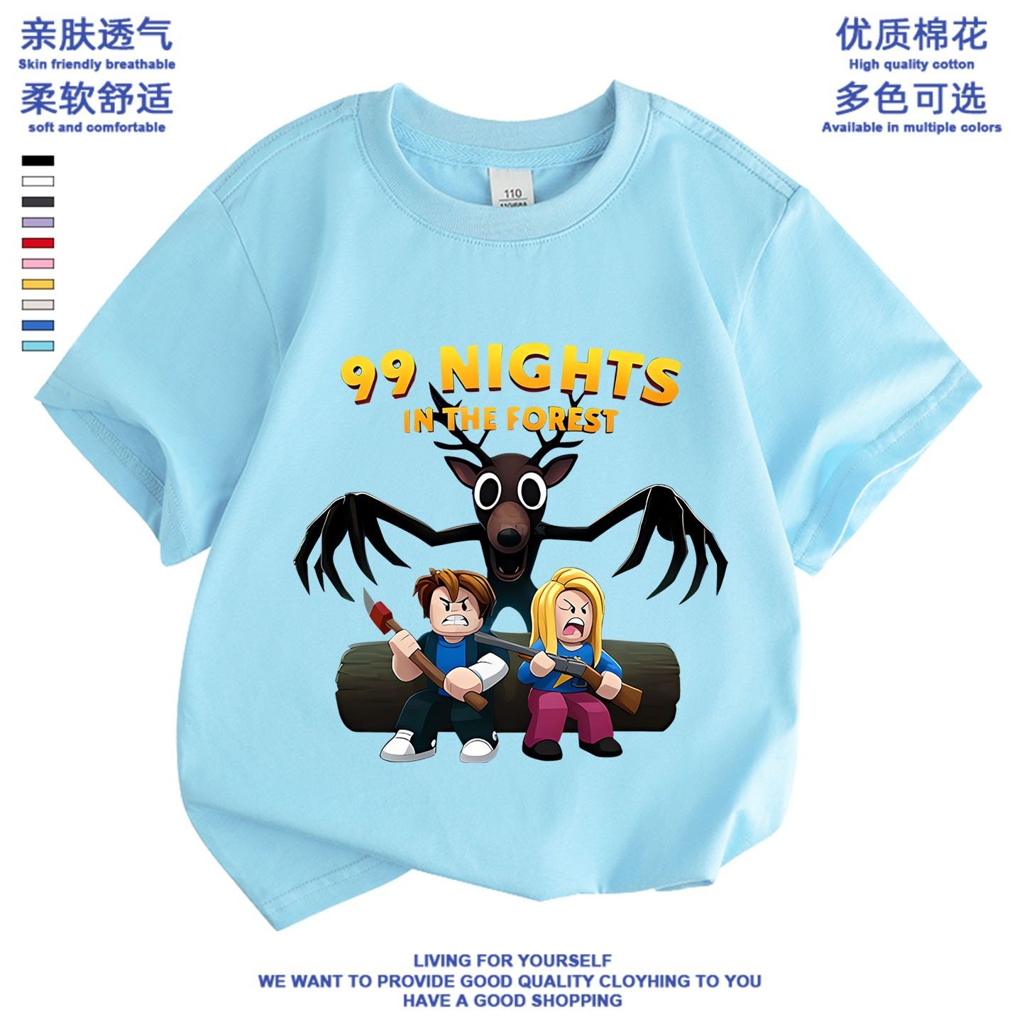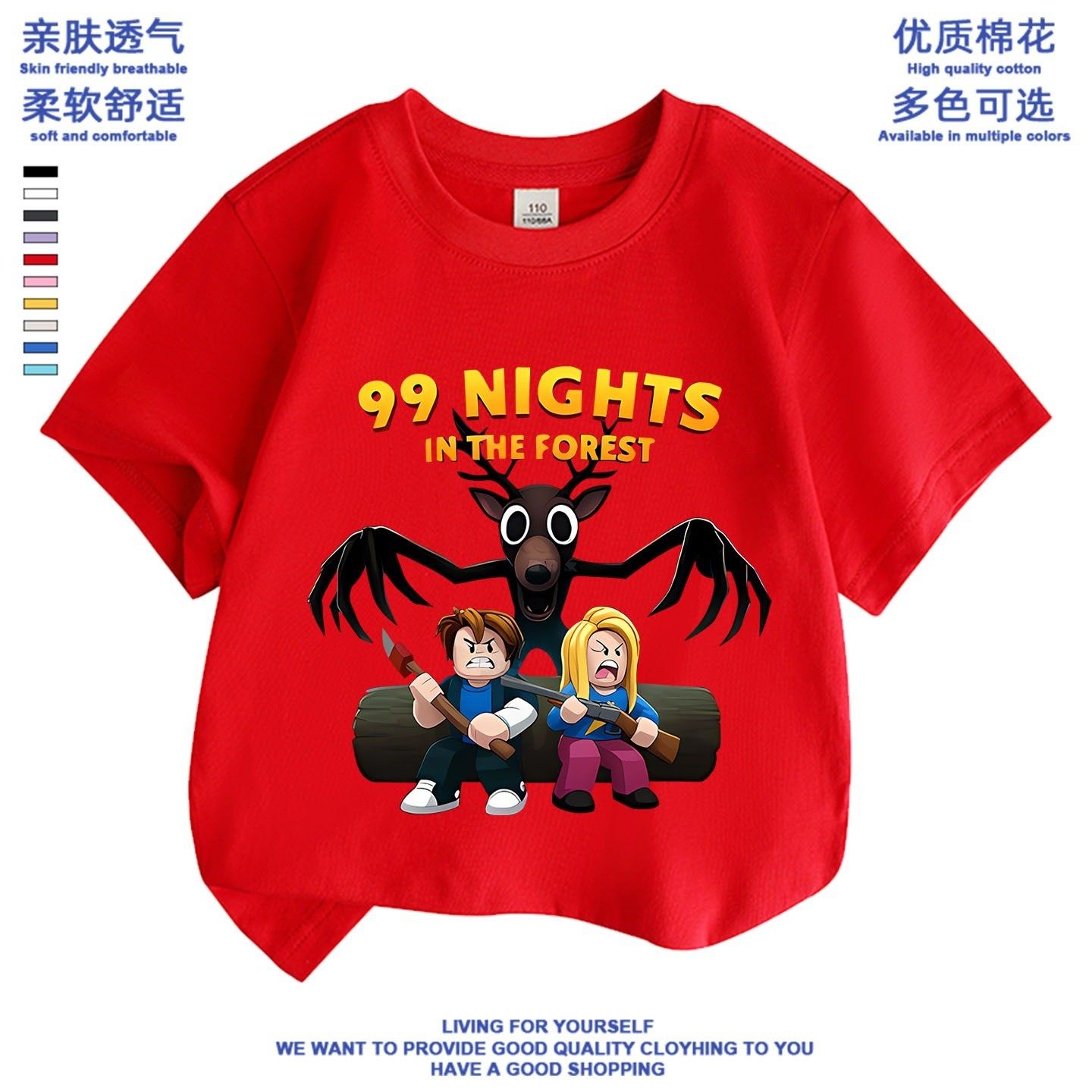 t恤Nights the Forest roblox森林中 99夏季 99夜衣服儿童短袖