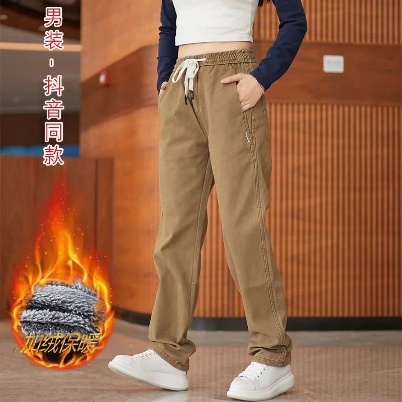 简约休闲慵懒风加绒加厚保暖阔腿裤 IEF 新款 子2025冬季 爱依服裤