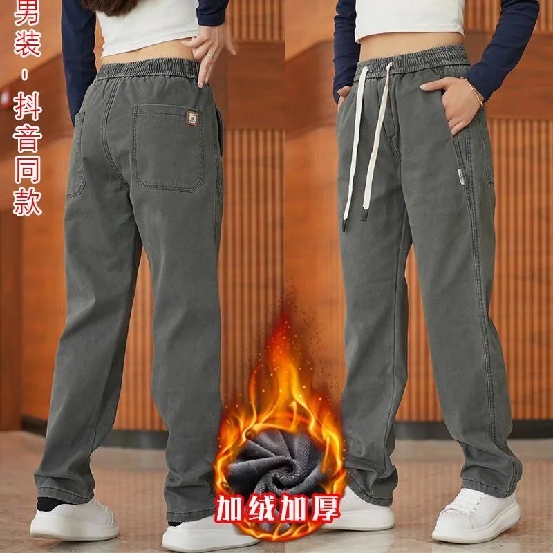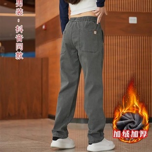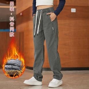 潮牌直筒保暖阔腿垂感加绒加厚休闲裤 重磅奥粒绒美式 男 冬季 GWIT