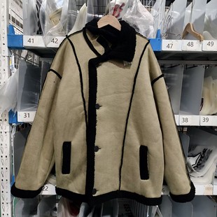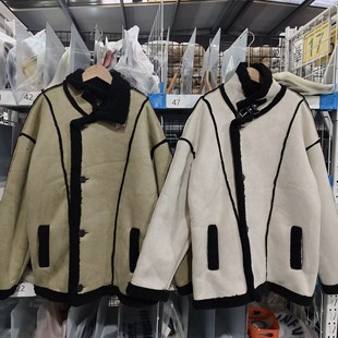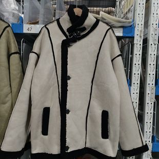 黑色休闲百搭连帽夹克上衣 胖mm双面穿毛绒棉服外套女冬季 大码 女装