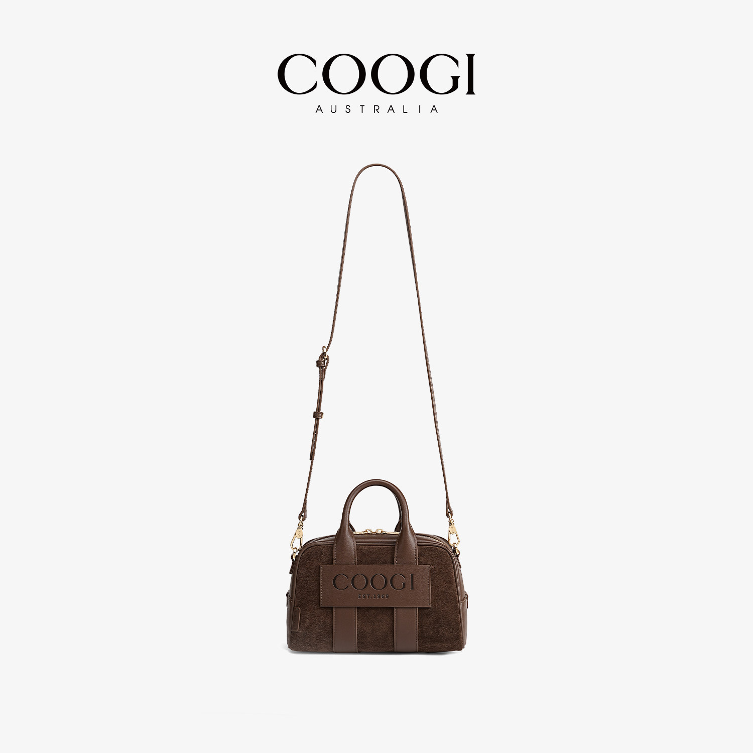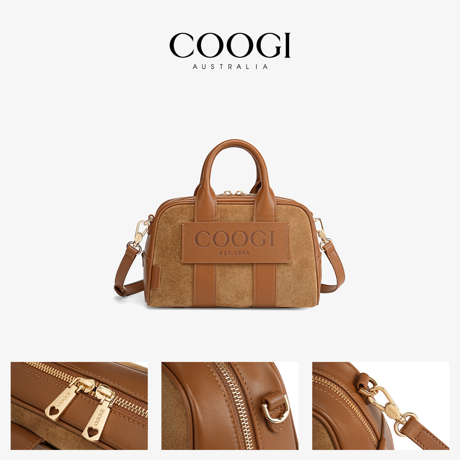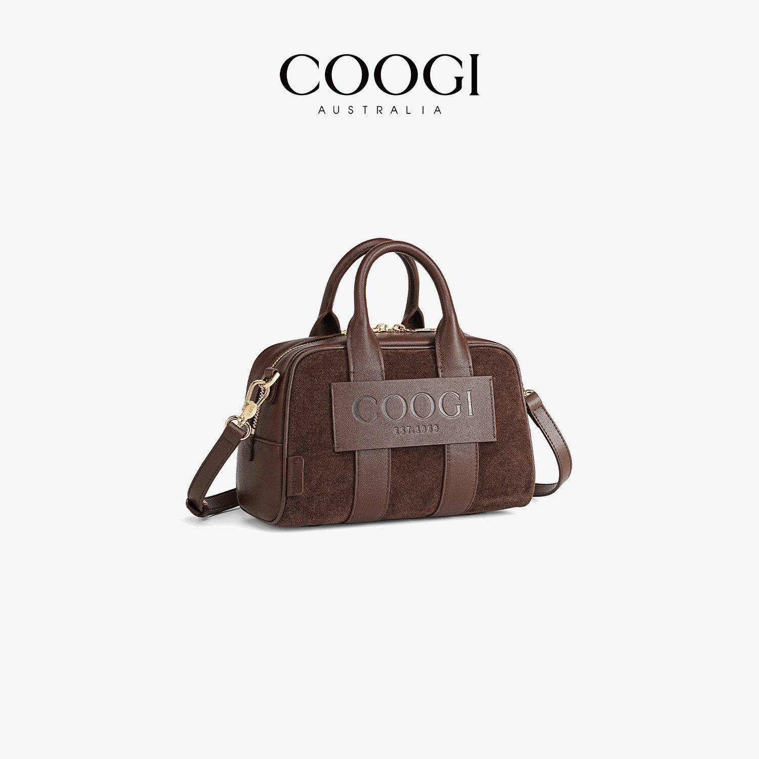 COOGI牛反绒女包2025新款 大容量手提保龄球包通勤真皮单肩斜挎包