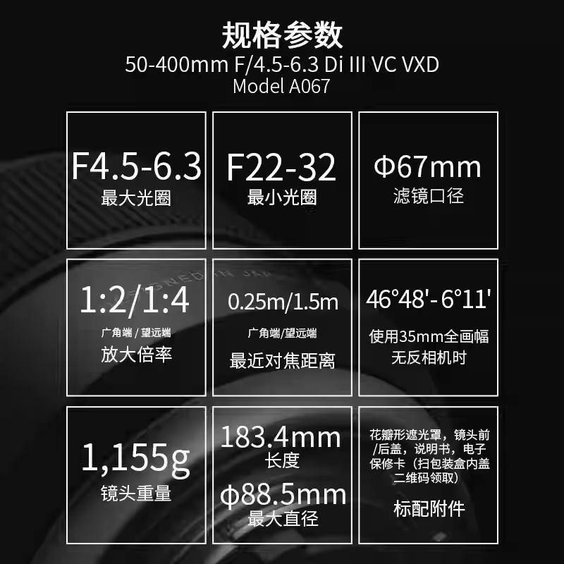 腾龙50 防抖演唱会变焦超长焦全画幅微单镜头50400 400mm
