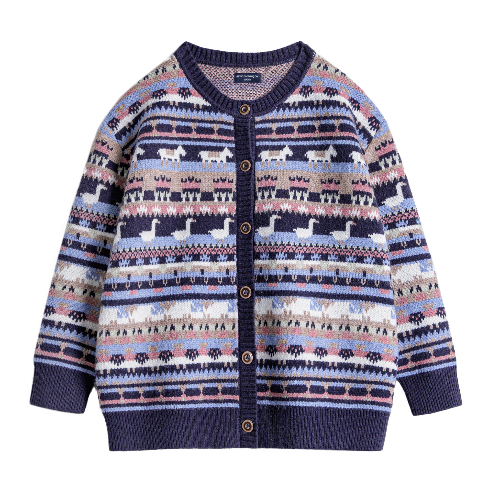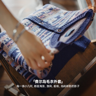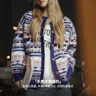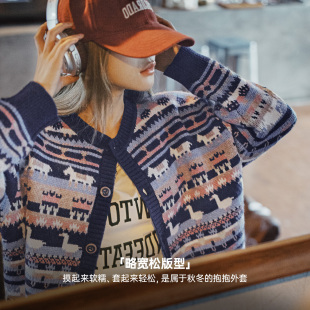 马登动物图案复古宽松加厚费尔岛针织提花毛衣开衫 外套上衣女春季