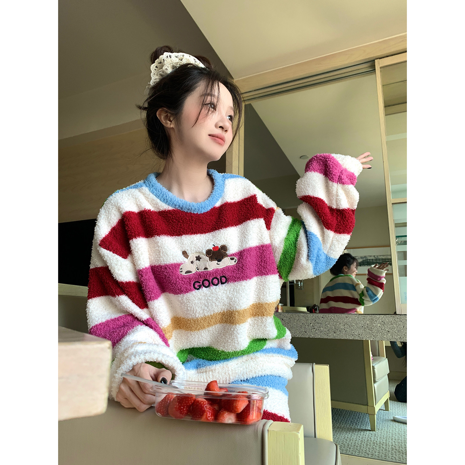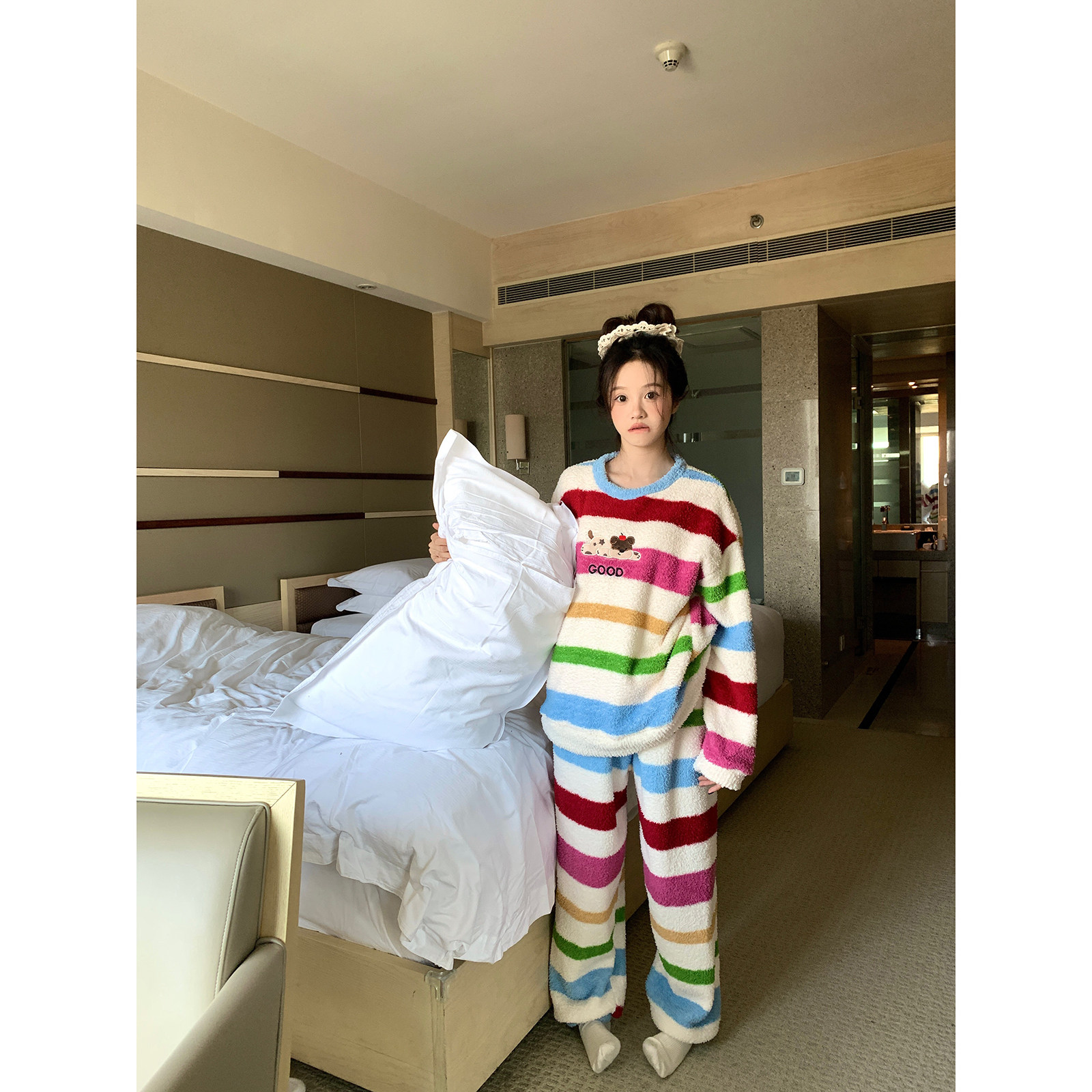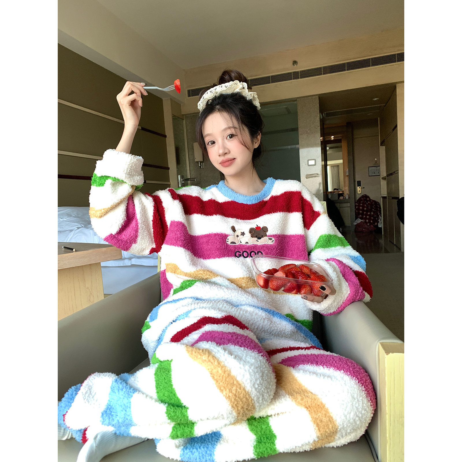 家居服卡通保暖可外穿 套装 网红珊瑚绒睡衣女生2025新款 薄绒秋冬款