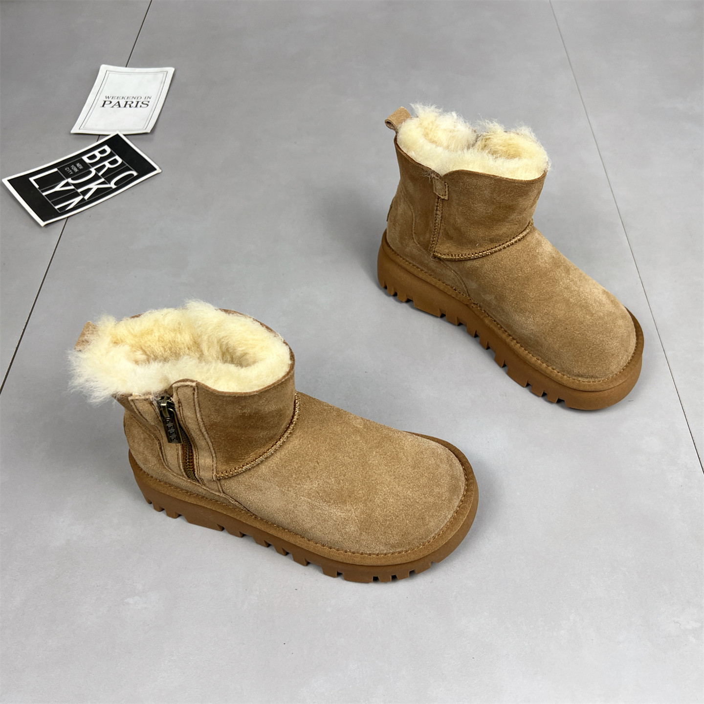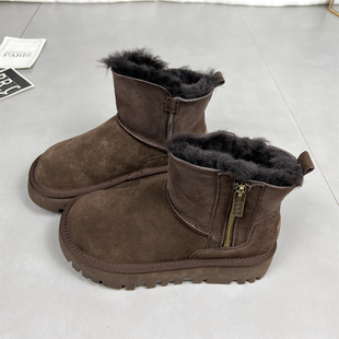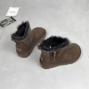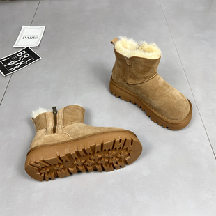 真皮厚底侧拉链短靴加绒保暖棉鞋 羊皮毛一体雪地靴女冬季 2025新款