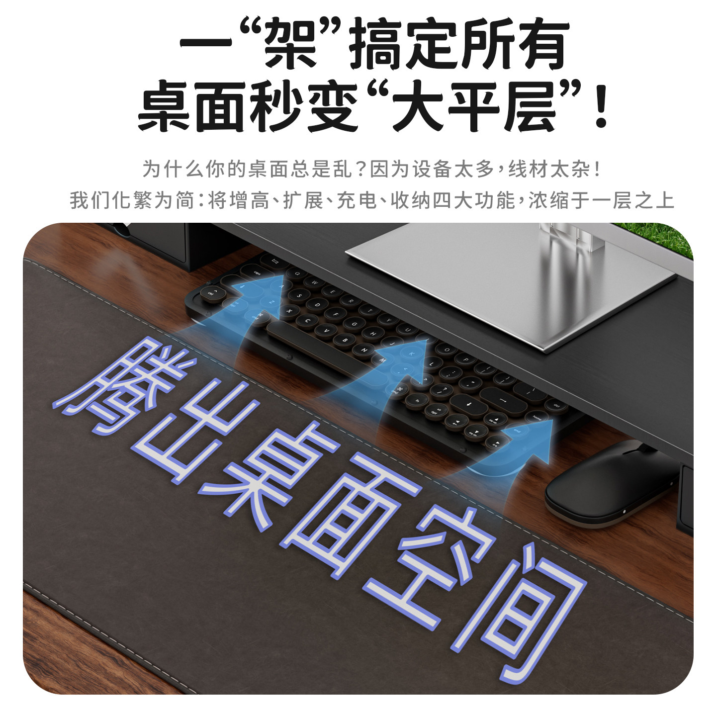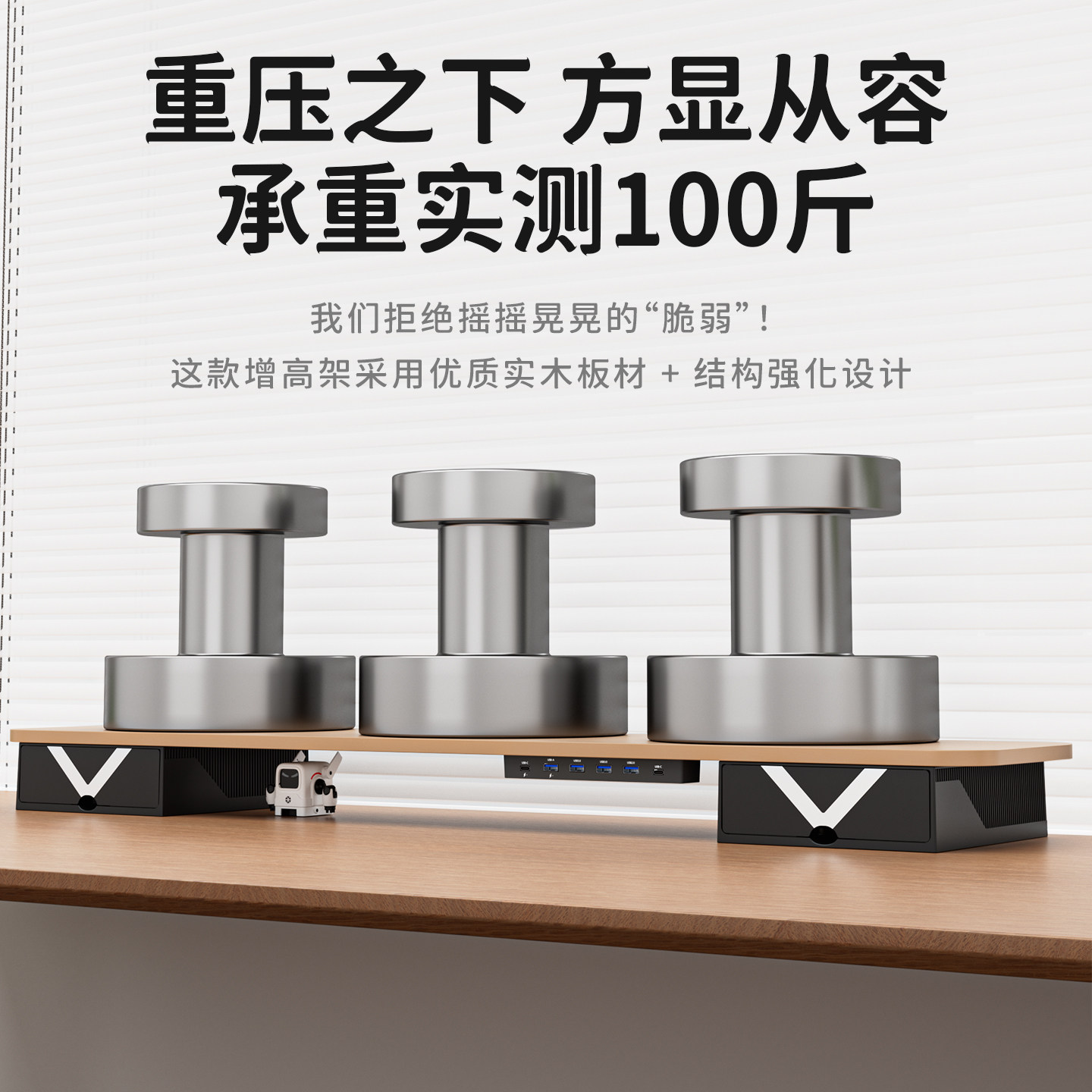 壁虎漫步实木质显示器增高架带抽屉收纳盒台式 电脑支架办公室工位桌面置物架USB扩展充电屏幕垫高支撑托底座
