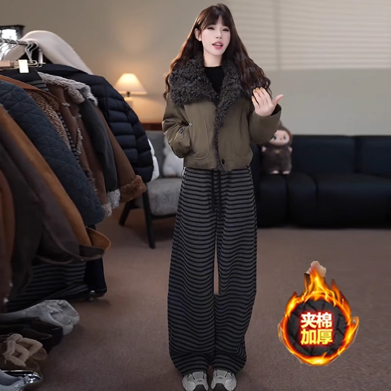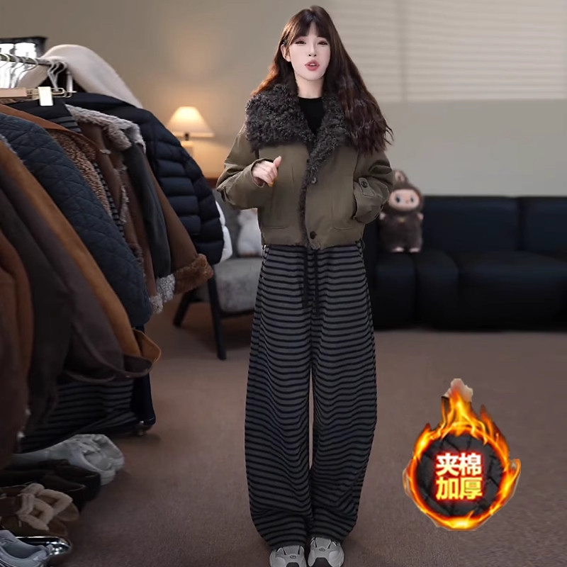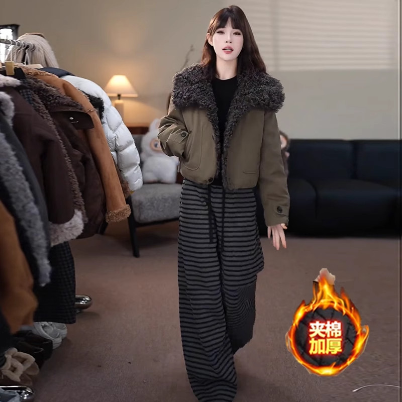 内胆棉衣外套加厚加绒羊羔绒修身 小棉袄女短款 时尚 新款 服 2025冬季