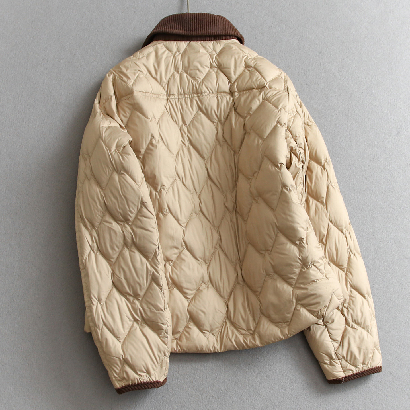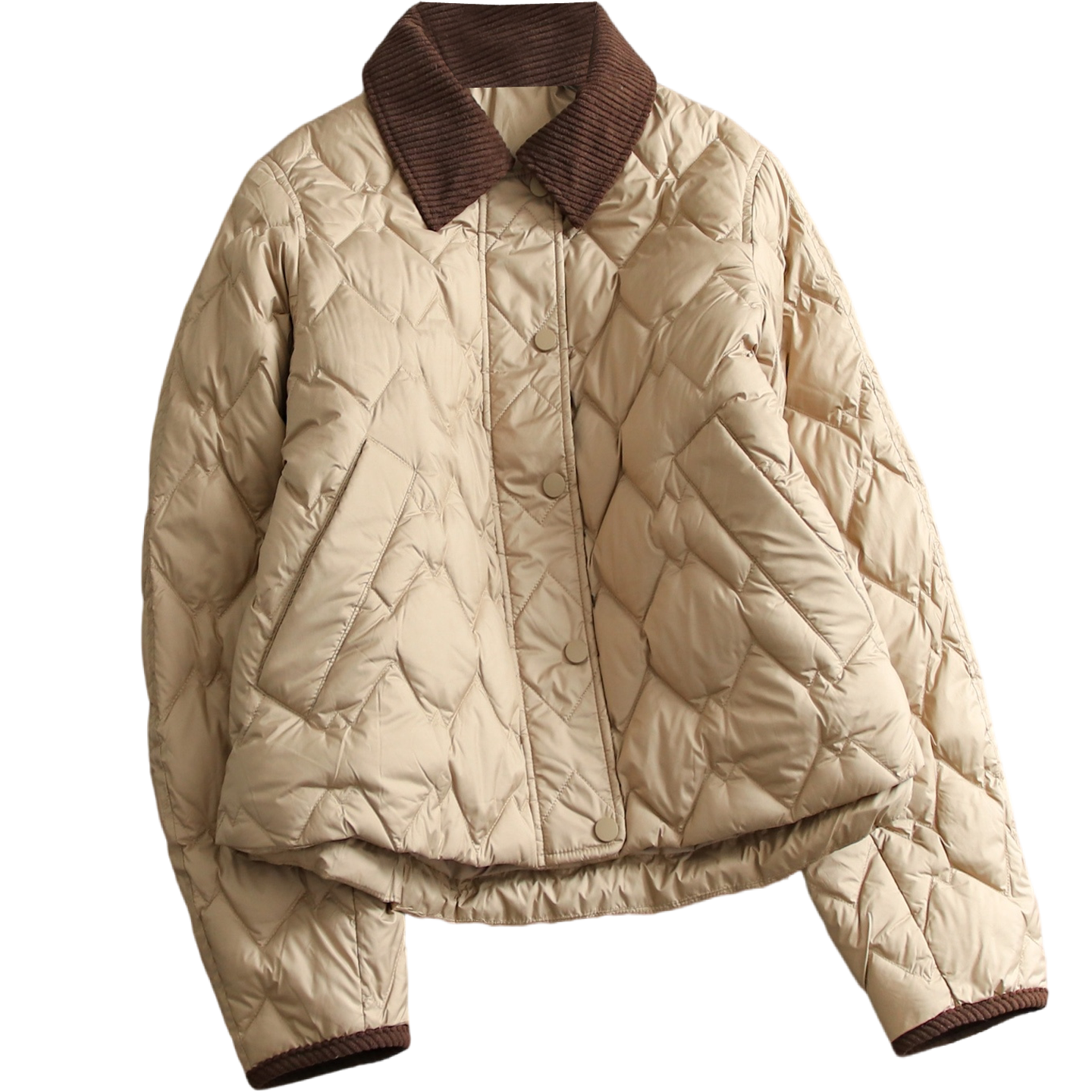 巴恩风撞色拼接灯芯绒翻领绗缝薄款 外套女羽绒服Q153 挺括廓形长袖