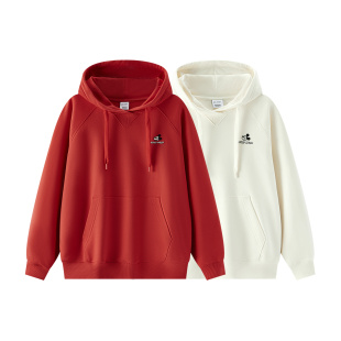 森马迪士尼合作系列卫衣女春季 连帽刺绣新年红色衣服 宽松插肩袖