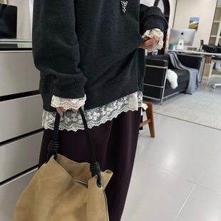 显瘦圆领套头蕾丝拼接T恤 女冬韩版 one12367磨毛加绒中长款 打底衫