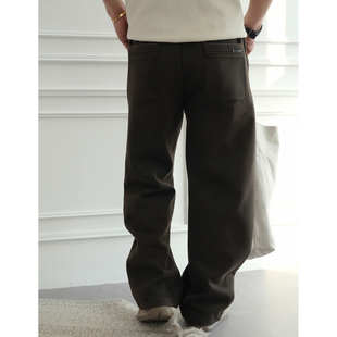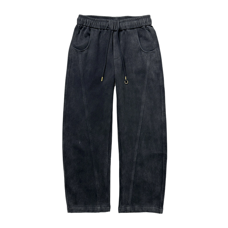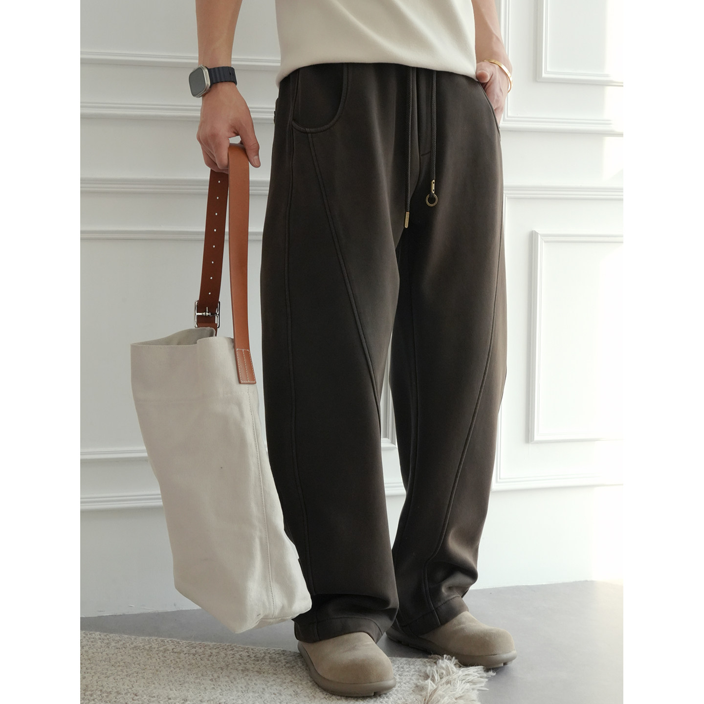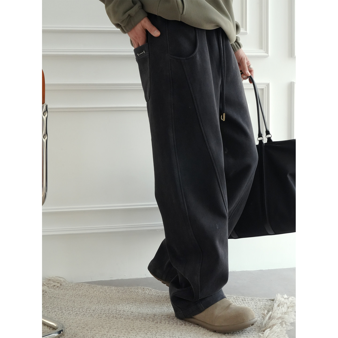 高街重磅水洗做旧纯棉休闲裤 简约加绒弯刀裤 男士 潮流新款 冬季 美式