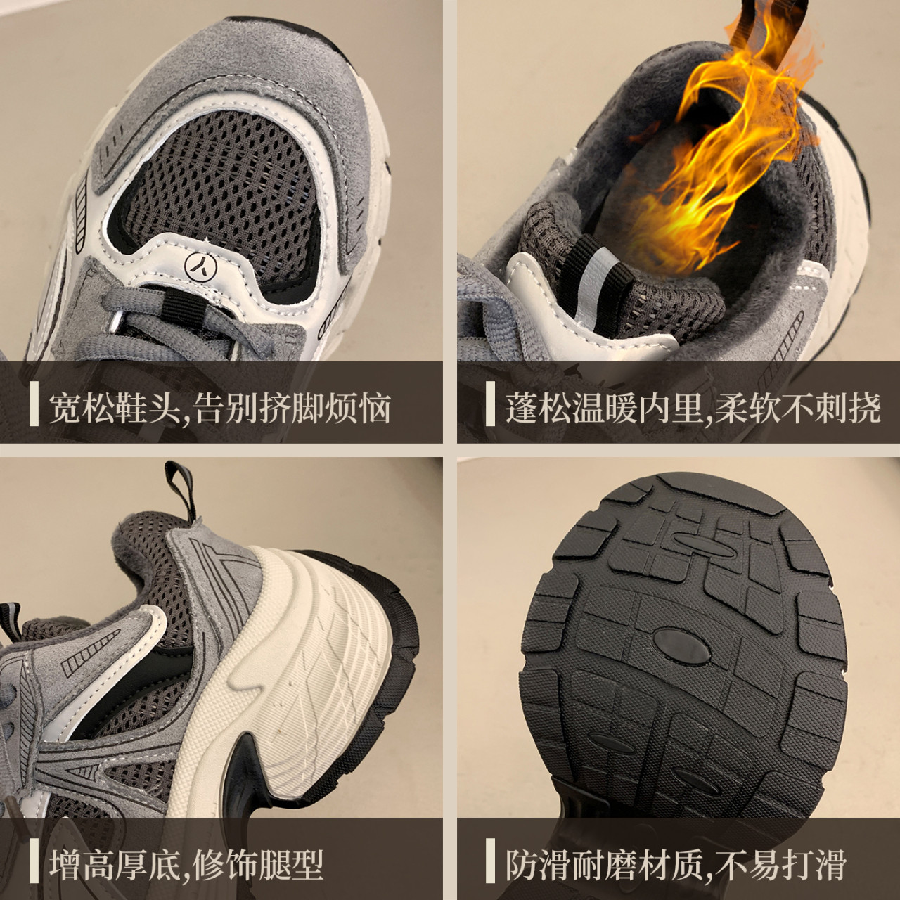 厚底增高显脚小休闲鞋 加绒老爹鞋 百搭运动鞋 新款 ins潮 女2025冬季