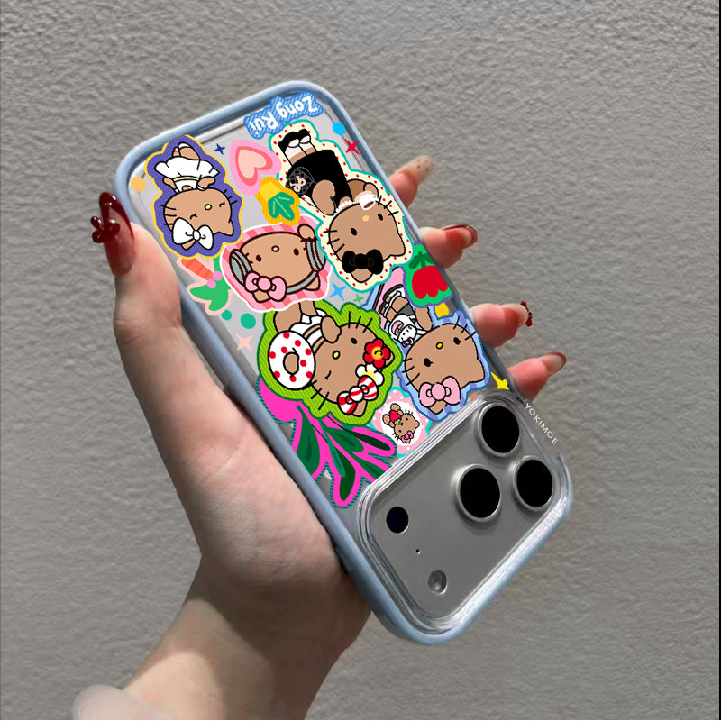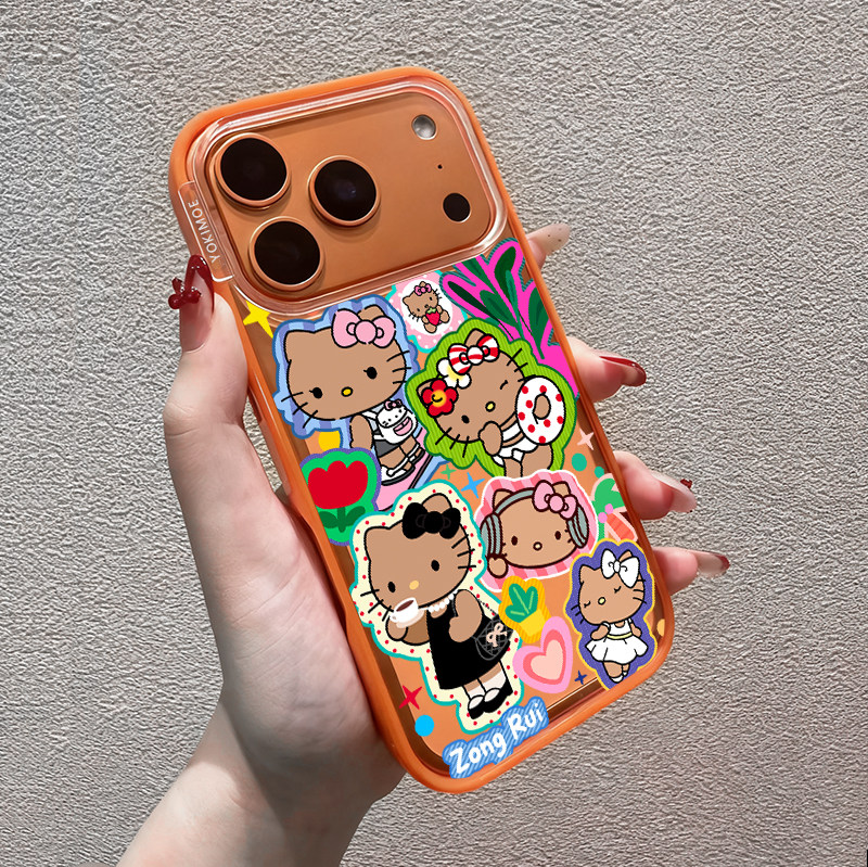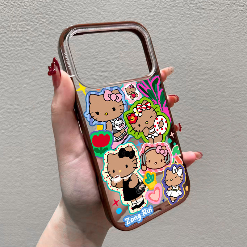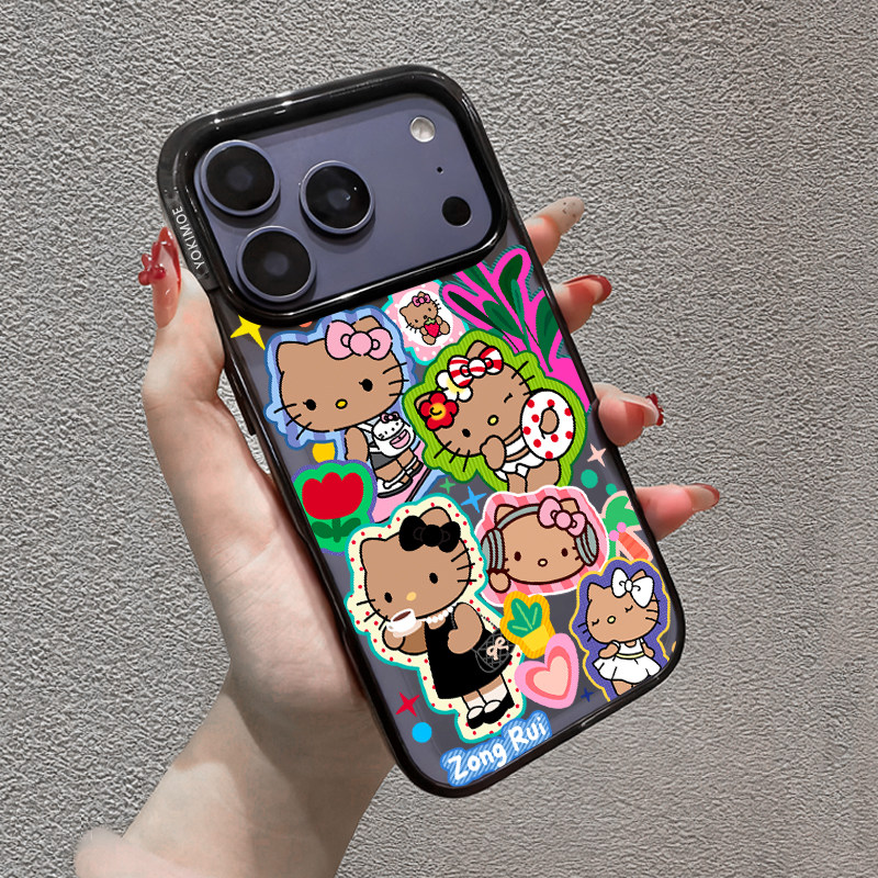 联名Hello 16pro全包15por磁吸14plus女生13防摔亚克力保护套 Kitty凯蒂猫黑皮kt适用苹果17ProMax手机壳新款
