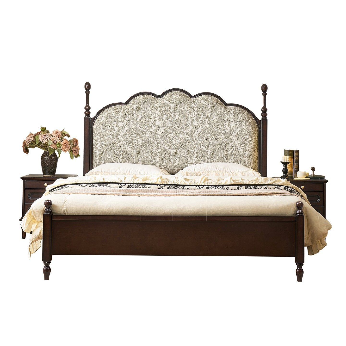 政府补贴全友家居实木床脚1米8双人床奶油原木风卧室床1米5家具