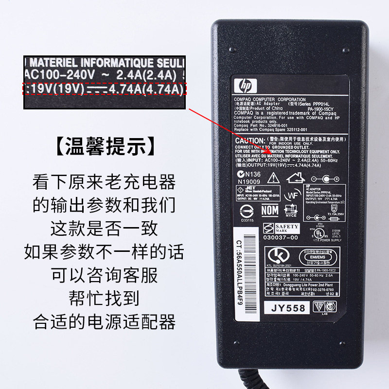 CQ45笔记本电源适配器 CQ40 19V4.74A带圆口带针 惠普 原装