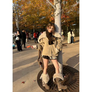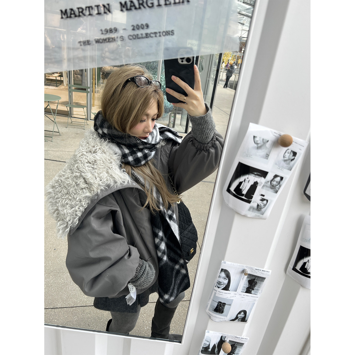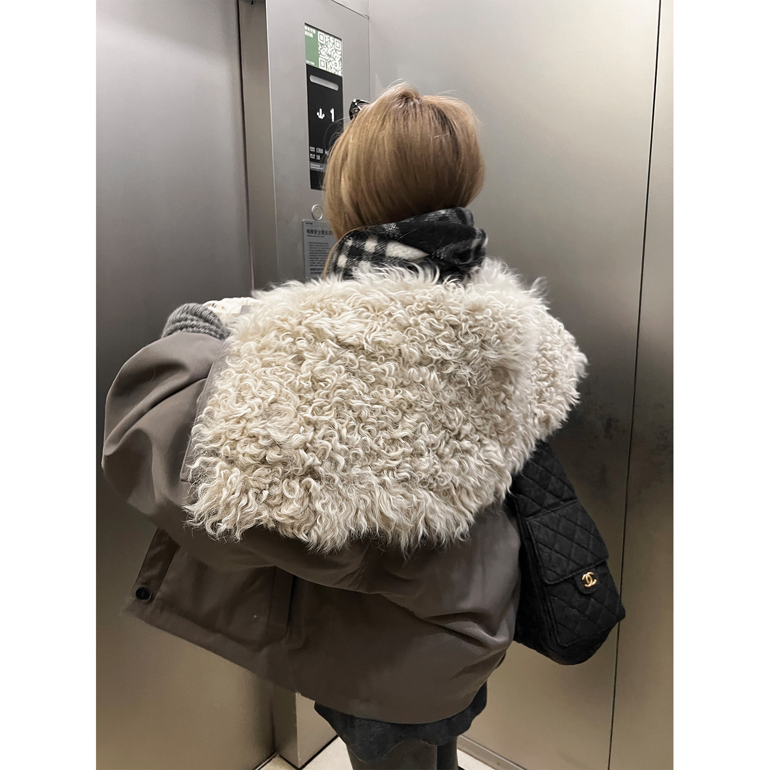 派克短款 Xinlei 大翻领羊卷毛白鹅绒工装 暖冬密码 羽绒服外套 Lin