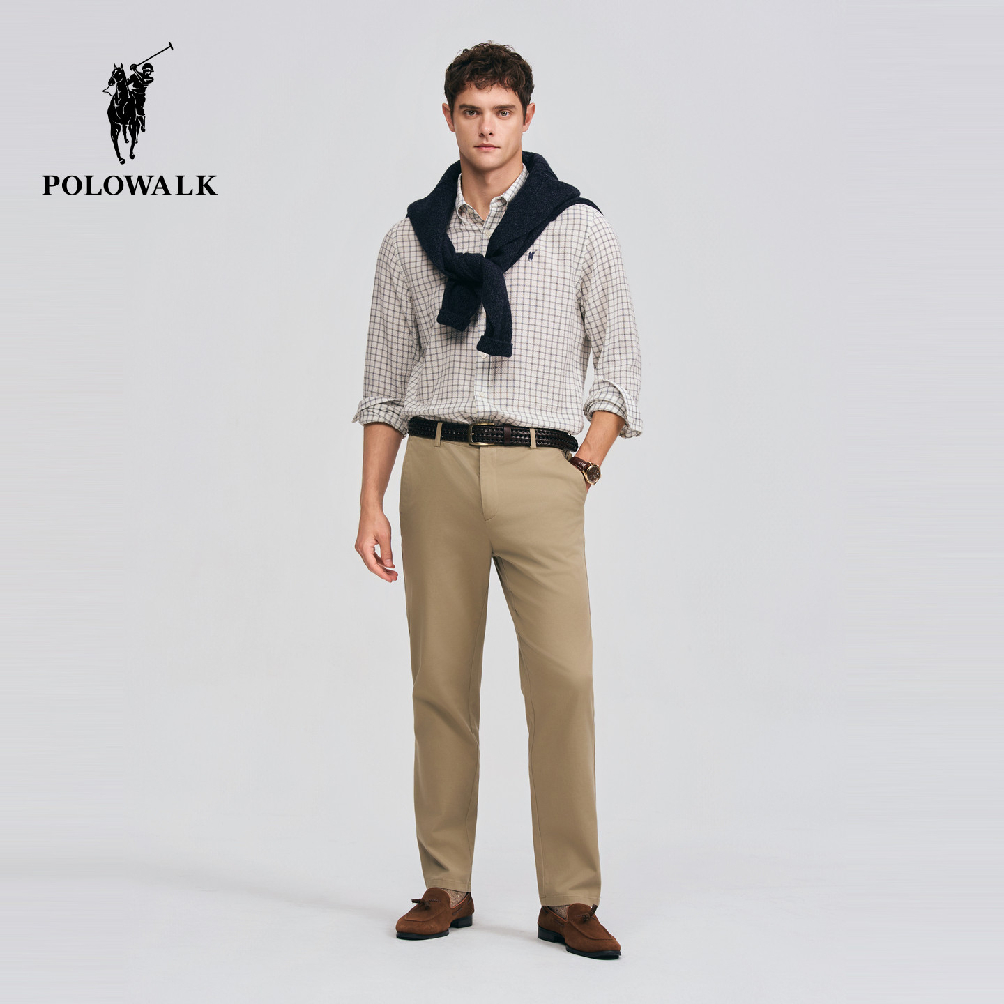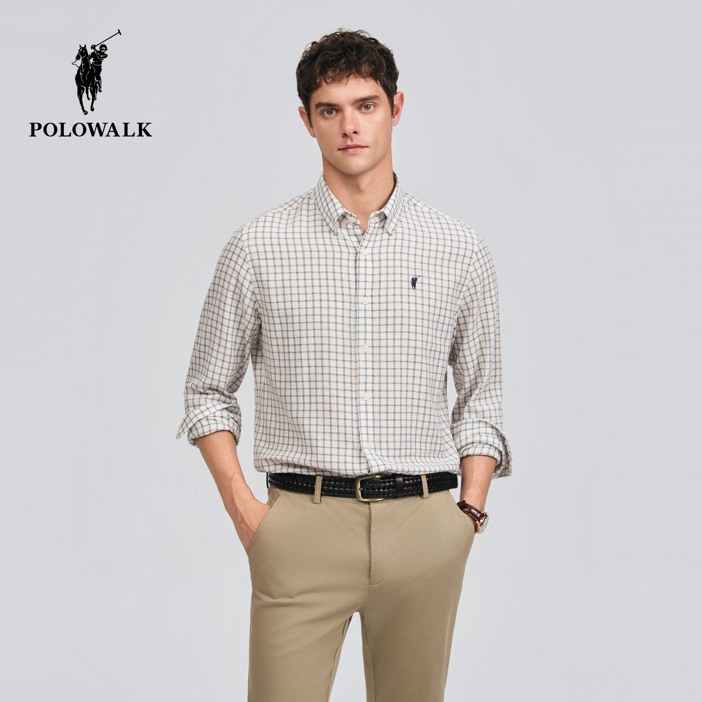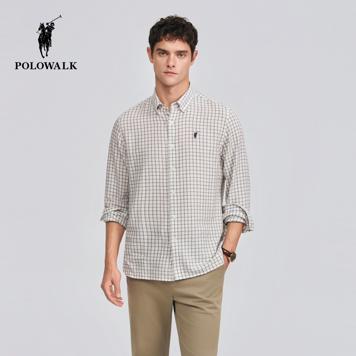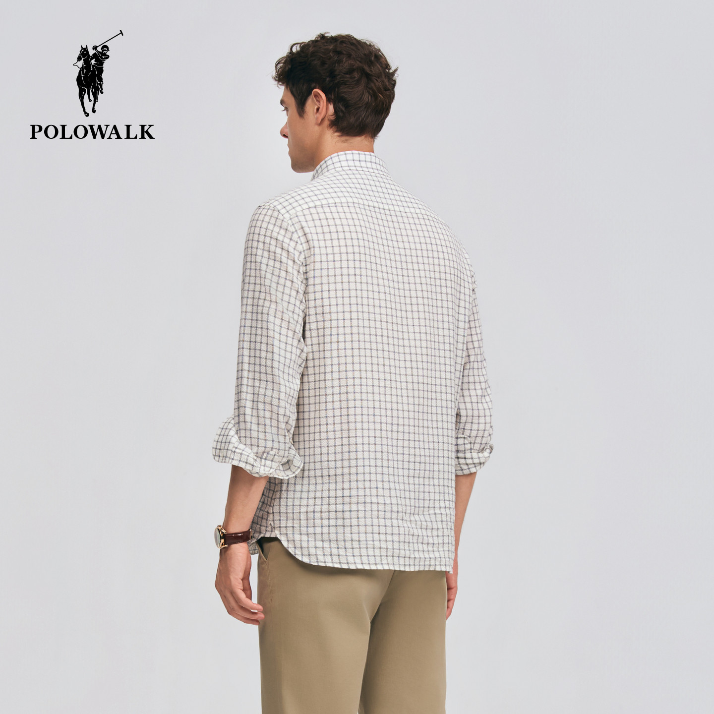 2026春季 衬衫 新品 方格条纹休闲翻领开衫 POLOWALK男式 衬衣男装 长袖