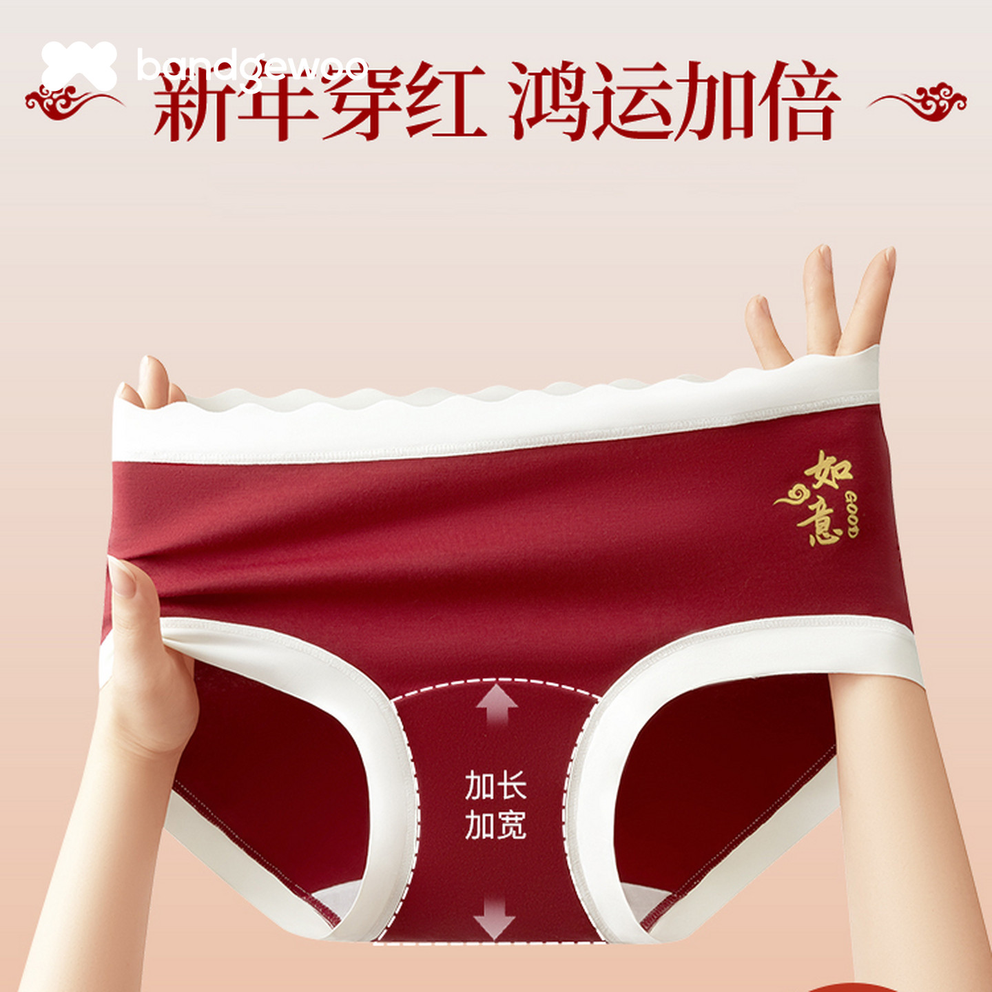 本命年红收腹全棉女士抗菌少女三角短裤 夏季 头 女中腰大码 纯棉内裤