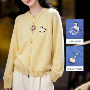 毛衣女春季 百家好小马刺绣撞色开衫 圆领休闲提花上衣 House Basic