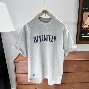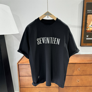 打底衫 高克重圆领宽松潮牌上衣重磅休闲半袖 T恤男士 字母印花短袖